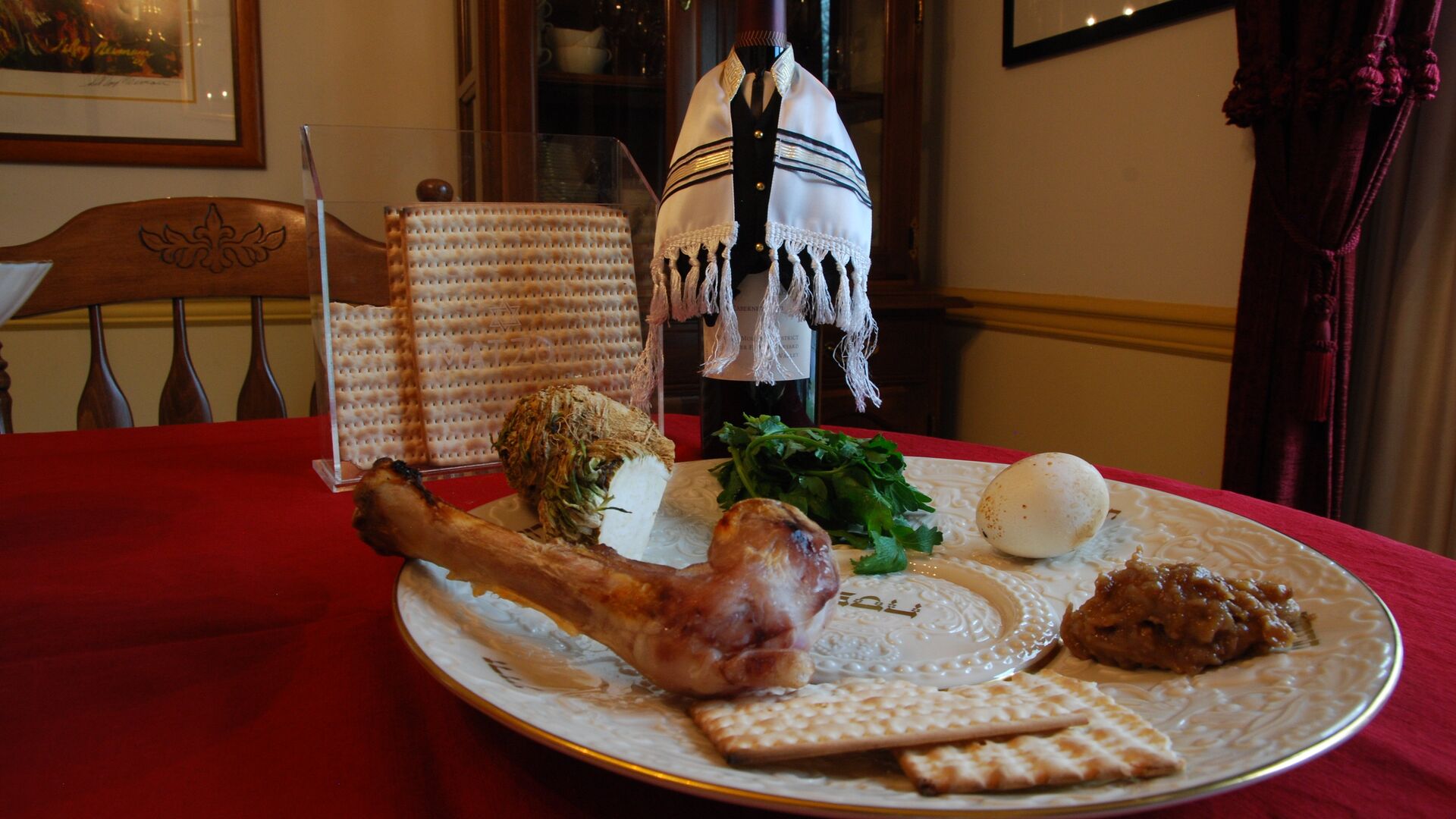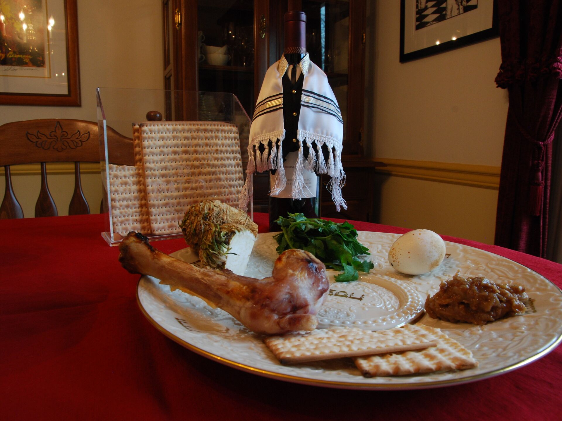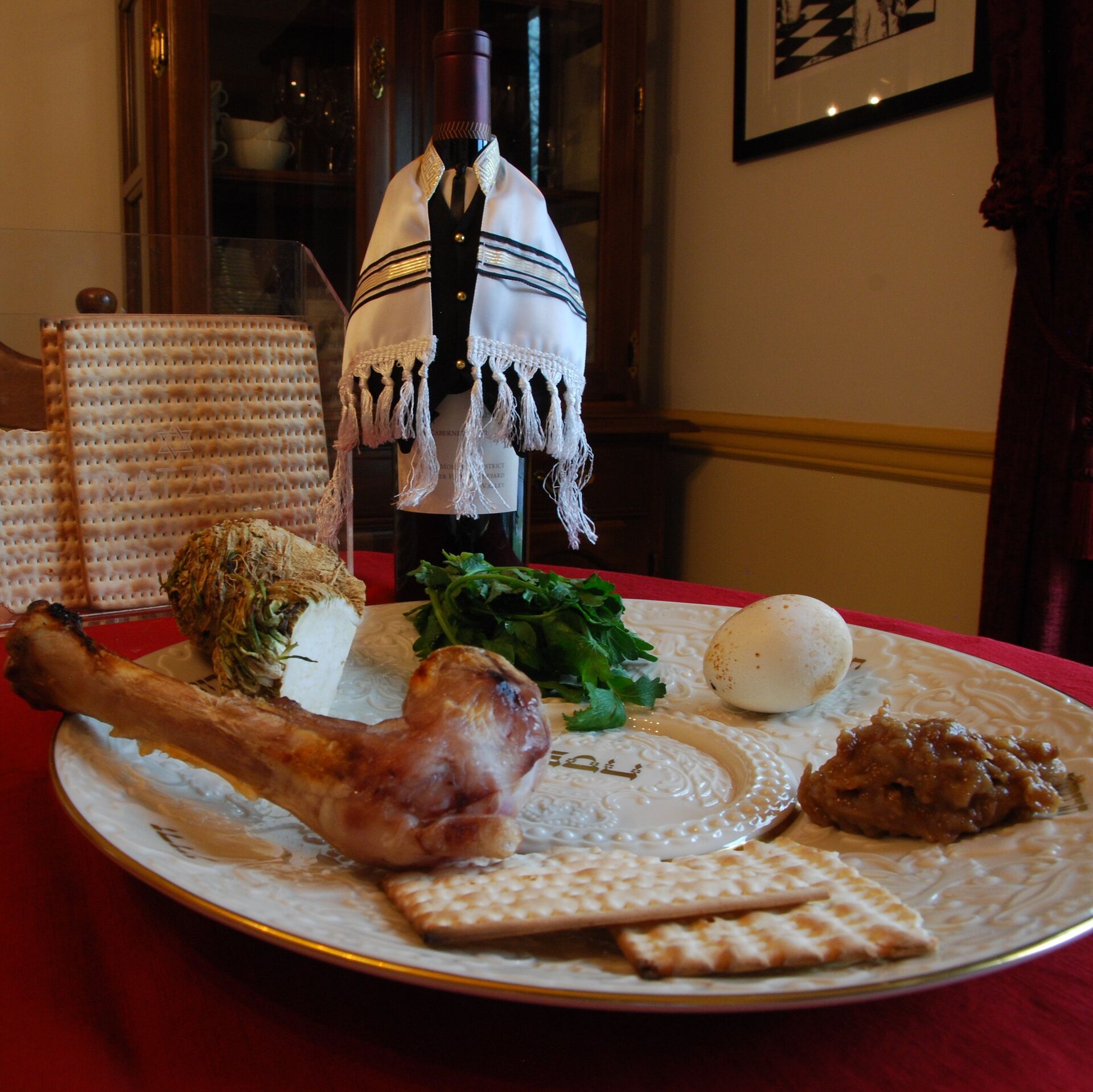 Он уточнил, что первое блюдо — это зроа (запеченная косточка курицы или ягненка, представляющая пасхальное жертвоприношение). Затем — бейца (печеное яйцо, символизирующее скорбь по разрушенному храму в Иерусалиме). Третье блюдо — харосет (смесь порезанных яблок, орехов, корицы и вина, представляющая глину, использованную евреями для строительства египетских монументов). И еще — марор (горькие травы, обычно используют свежий хрен или листья салата, которые означают оставшуюся горечь после страданий, испытанных в рабстве).