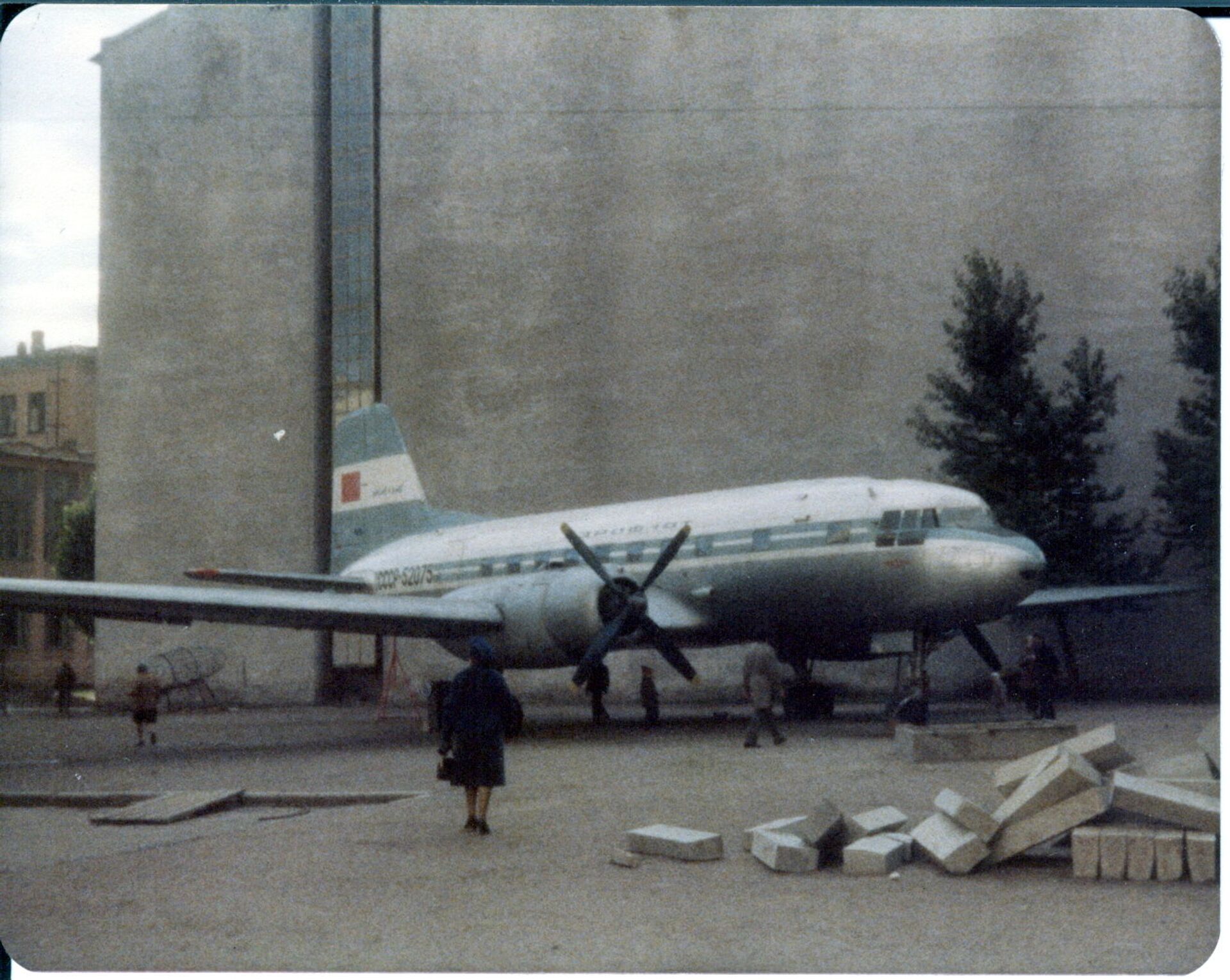 Ил взлетал очень тяжело: вроде оторвался от земли, но при этом еще несколько раз касался полосы. Когда он, наконец, поднялся в воздух, самолет повело влево. Он отклонился от курса, задел электропровода и начал сметать на своем пути все подряд: сбил прожектор на крыше автобазы, врезался в столб, грузовые автомобили, забор и затем рухнул в котлован. К тому времени передняя часть фюзеляжа уже была полностью разрушена, хвостовая часть оторвана.