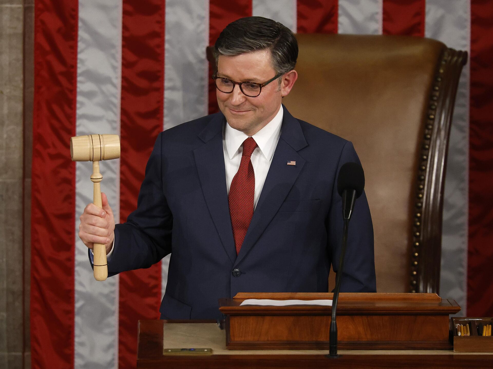 избран спикером 25 октября 2023 года. Представитель Республиканской партии тогда получил 220 голосов, что позволило ему стать 56-м главой законодательного органа. До него эту должность занимал Кевин Маккарти, а еще ранее Нэнси Пелоси.