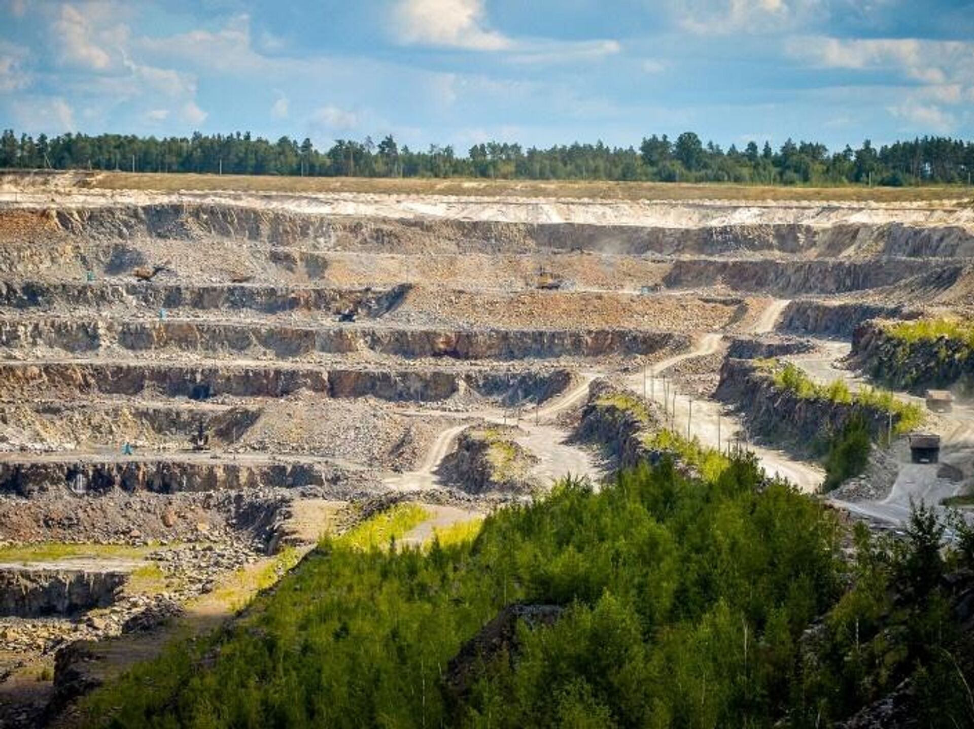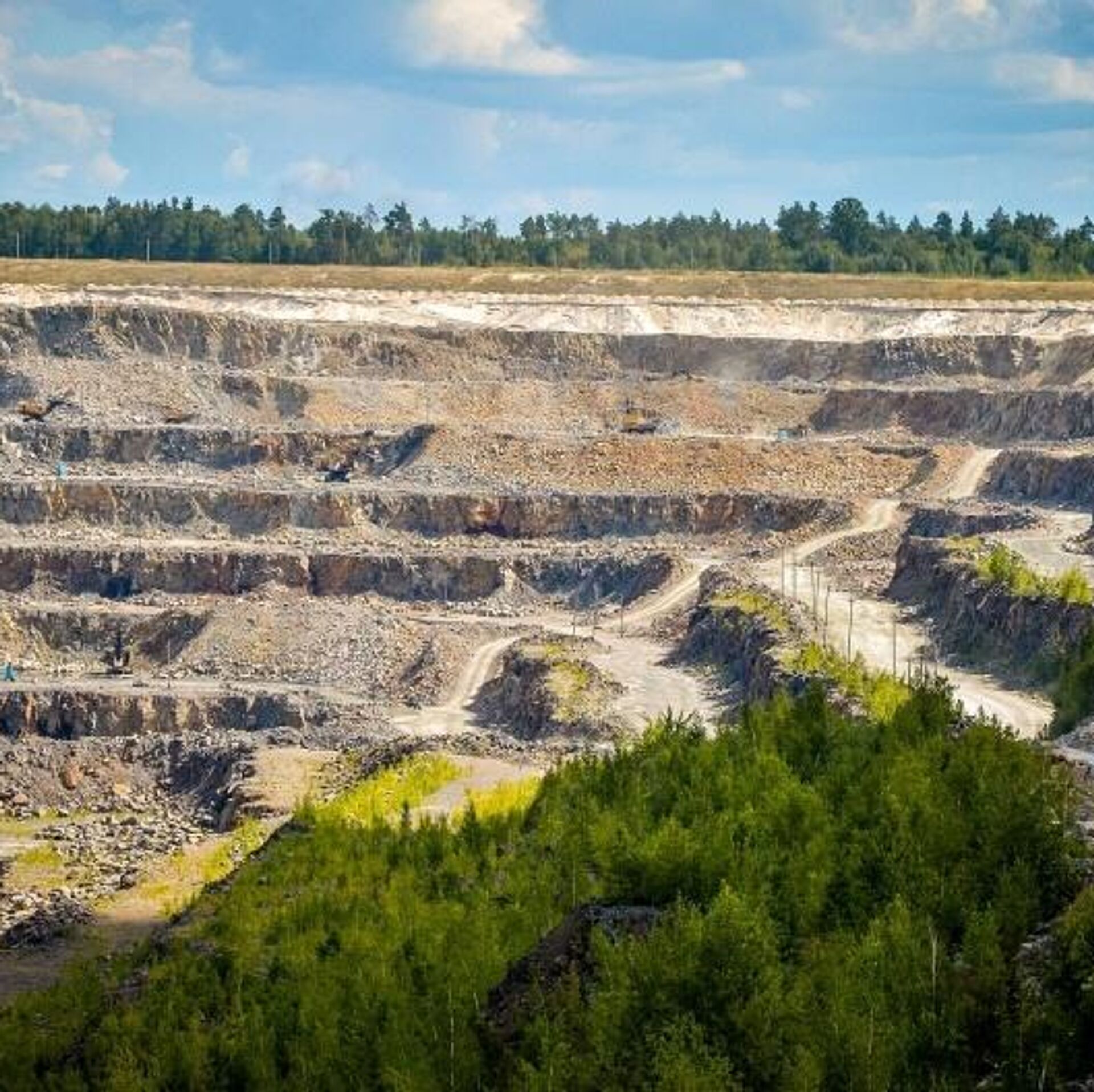 Крупнейшая в стране открытая горная выработка находится в Микашевичах, где добывают щебень для всей республики. 28.06.2025, Sputnik Беларусь