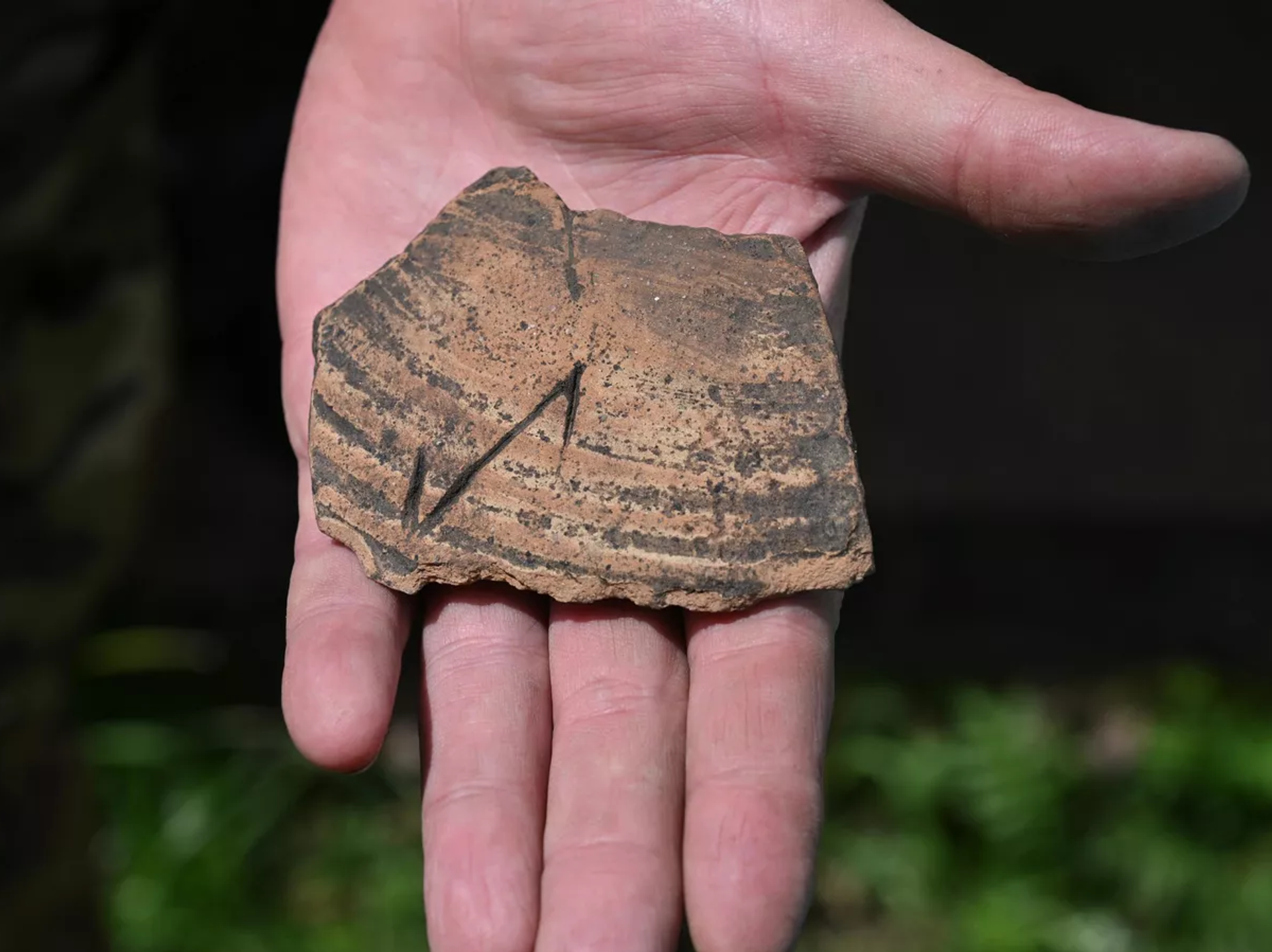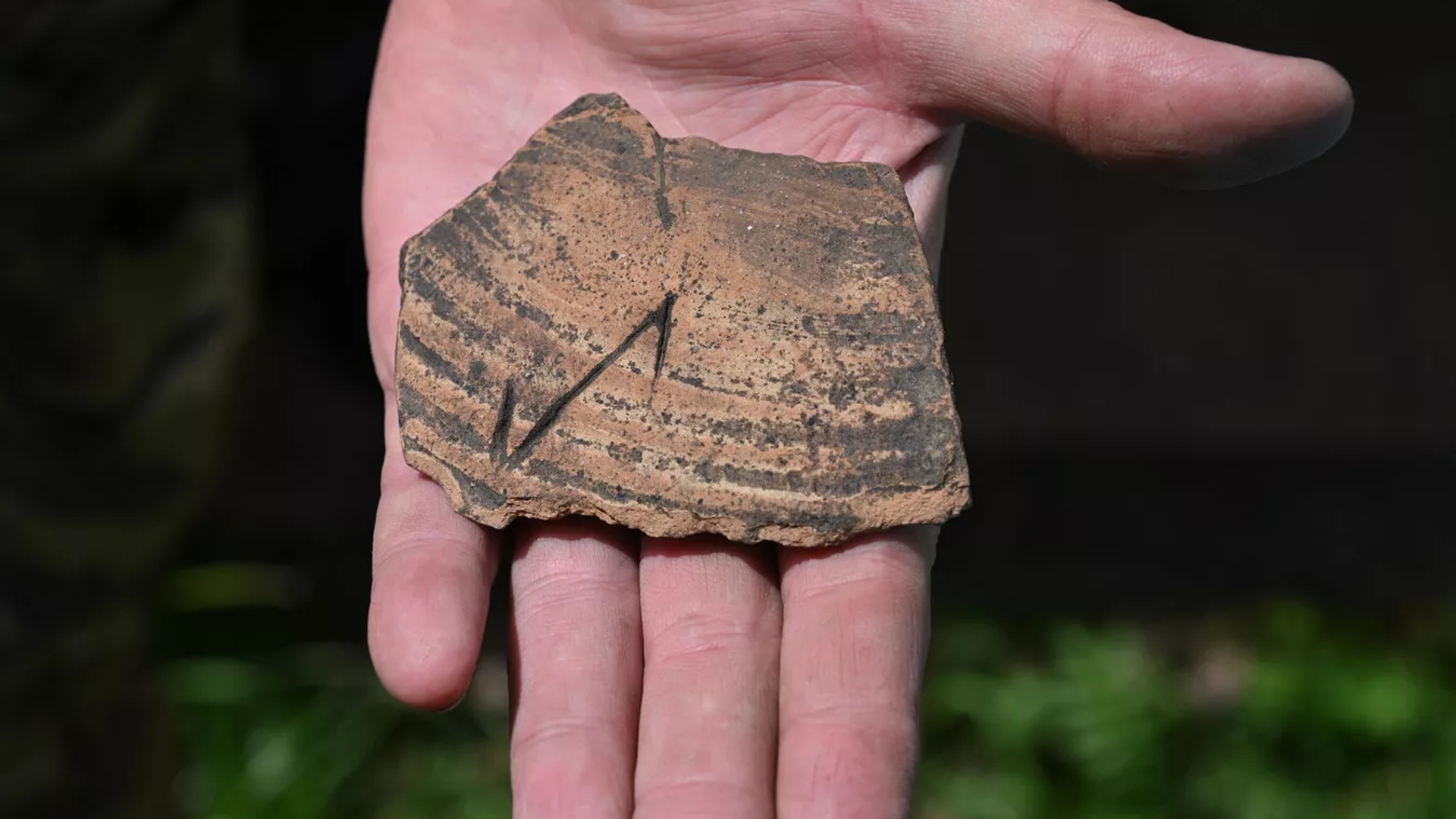 Однако самой ценной находкой археологи называют фрагмент амфоры, на котором нацарапана скандинавская руна Эйваз (Iwaz или тис).