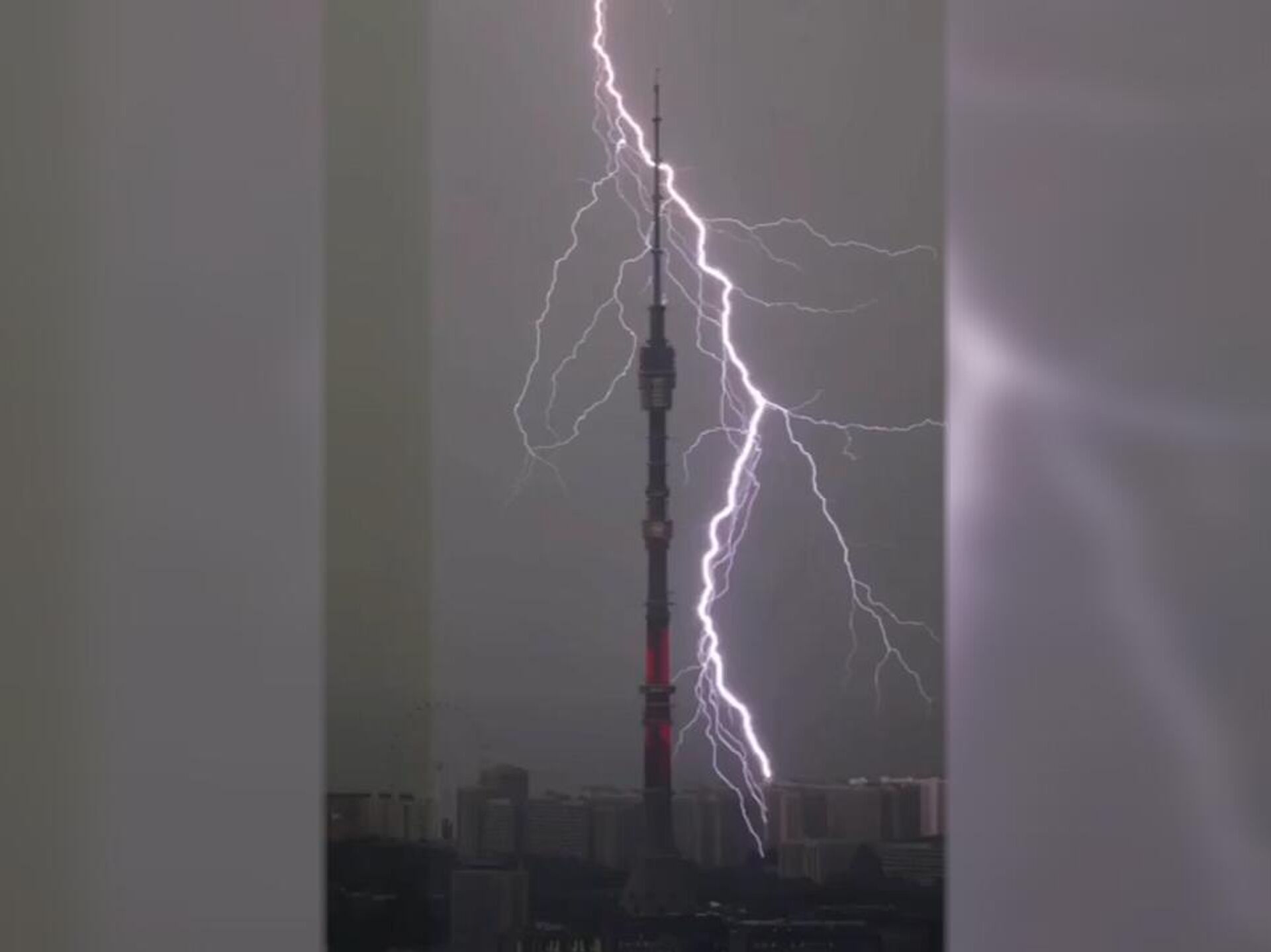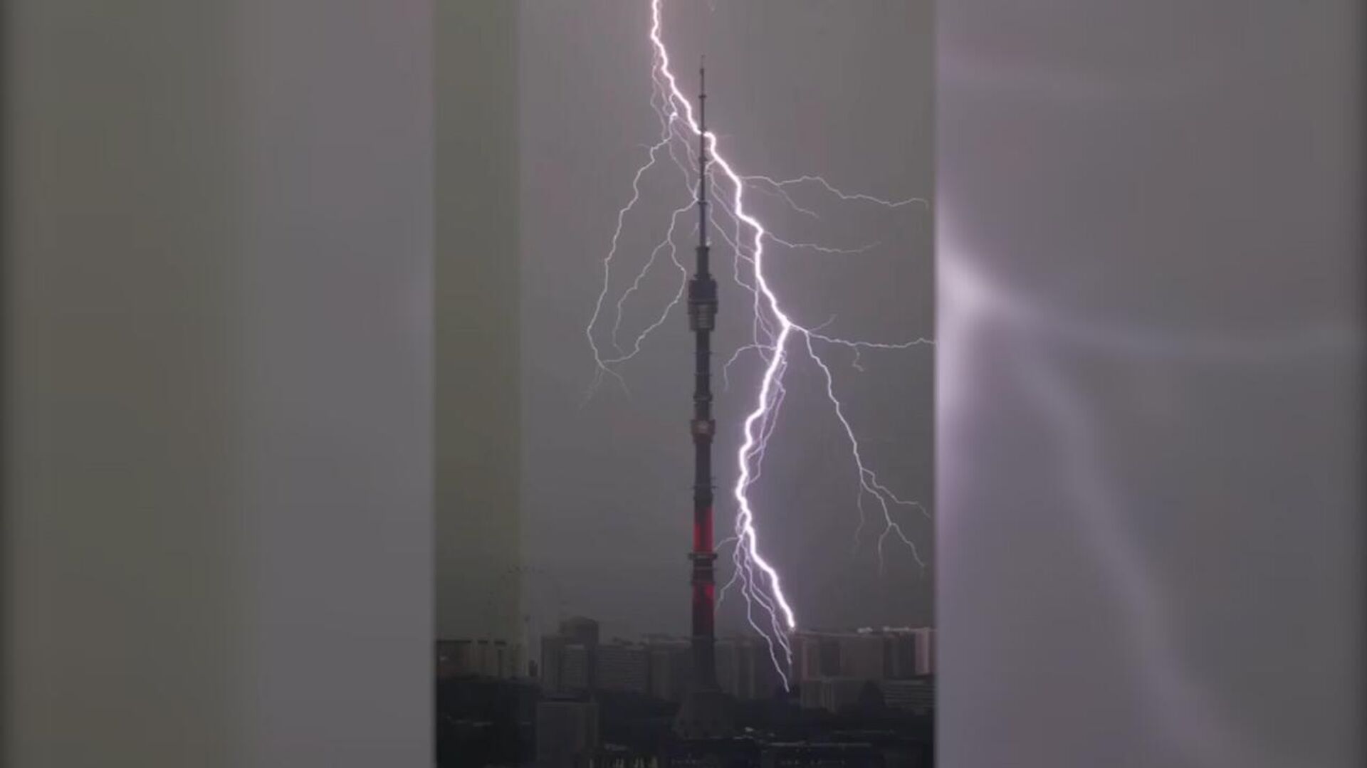 Самый эффектный кадр, снятый очевидцами, собирает тысячи просмотров, на видео ― разряд молнии, бьющий в здание рядом с Останкинской телебашней на фоне темного грозового неба.