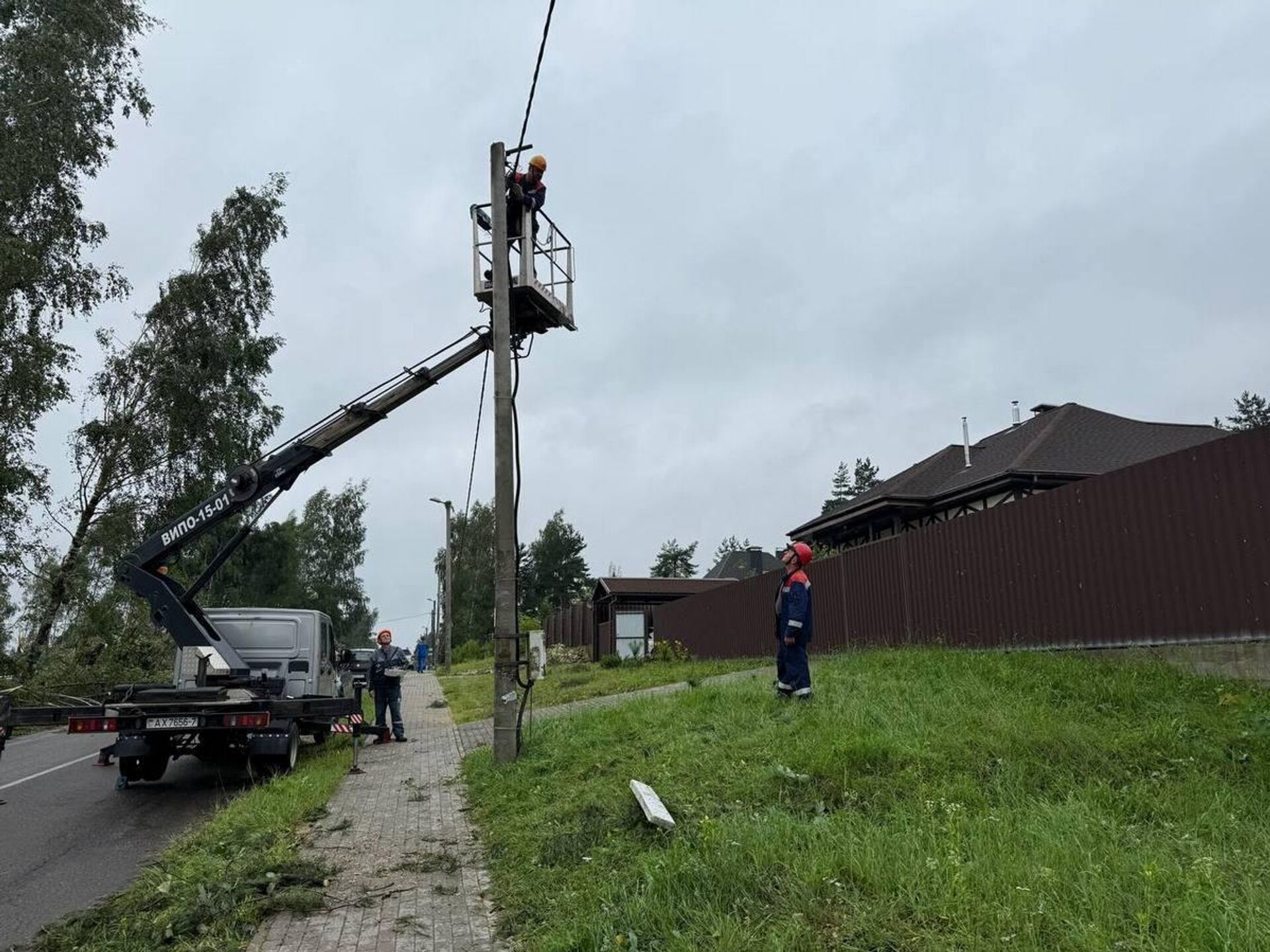 МИНСК, 30 июл - Sputnik. Гроза привела к массовым отключениям электроснабжения в поселке Колодищи, об этом рассказали в РУП "Минскэнерго".Более 600 частных жилых домов оказались без света по улицам Короткевича, Борисовская, Беловежская и Волмянский Шлях.По состоянию на 10:00 выявлено повреждение шести опор линий электропередачи, вызванное упавшими деревьями. "Энергетики филиала "Минские электрические сети" РУП "Минскэнерго" активно работают над перезапиткой потребителей для скорейшего восстановления электроснабжения", - отметили в ведомстве. Ожидается, что полностью электроснабжение для всех потребителей будет восстановлено ориентировочно к 16:00.Сейчас специалисты расчищают территорию от упавших деревьев, завозятся новые опоры. В восстановительных работах задействованы семь ремонтных бригад, одна оперативно-выездная бригада, пять подъемных вышек, один кран и две буровых установки.Сильный дождь с грозой обрушился на Минскую область накануне вечером.Самые интересные и важные новости ищите в нашем Telegram-канале и Viber. Также следите за нами в Дзен!