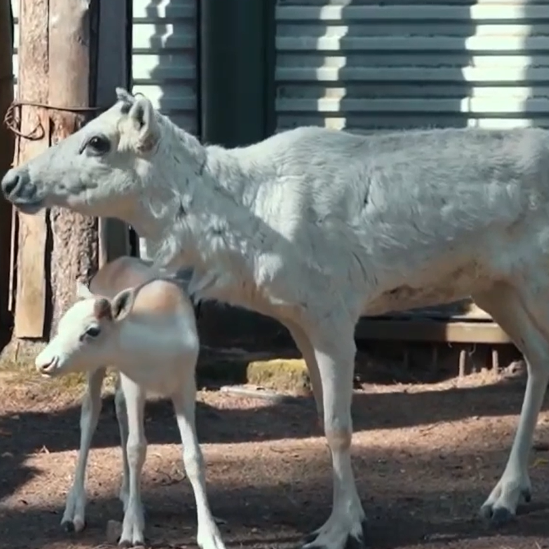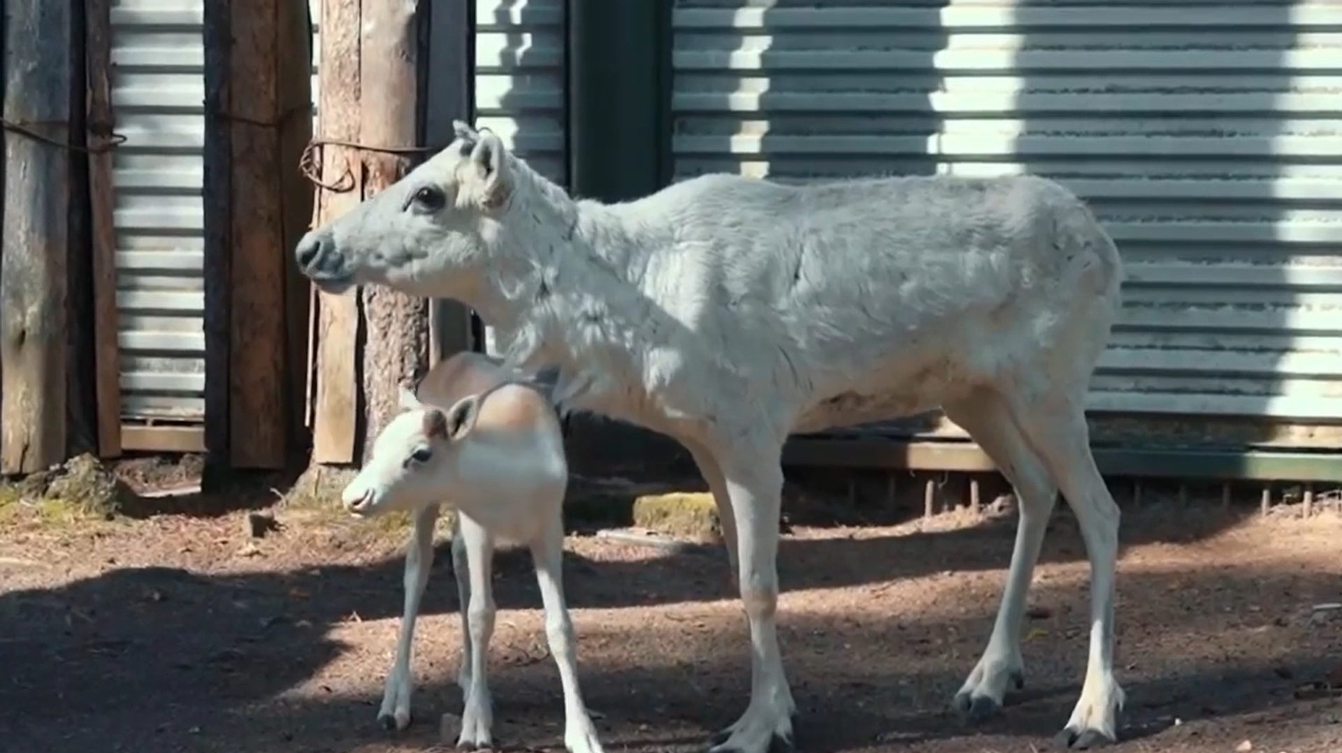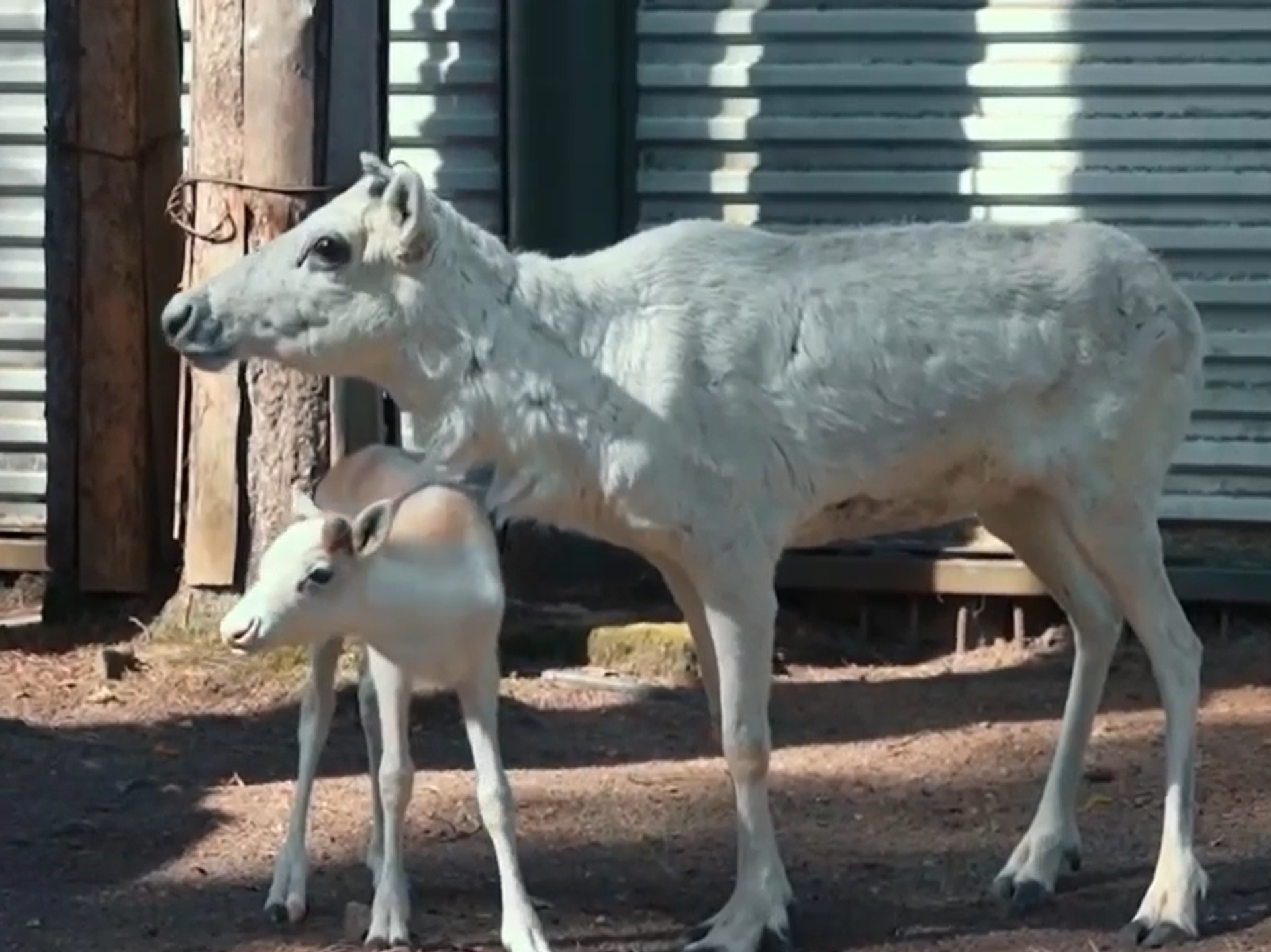 Самка северного оленя редкого белоснежного окраса, подаренная президенту России оленеводами из Тундры, принесла пополнение ― сейчас она вместе с годовалым малышом обитает в Зоосаду Великого Устюга. Смотрите, как чувствуют себя олени на новом месте жительства.