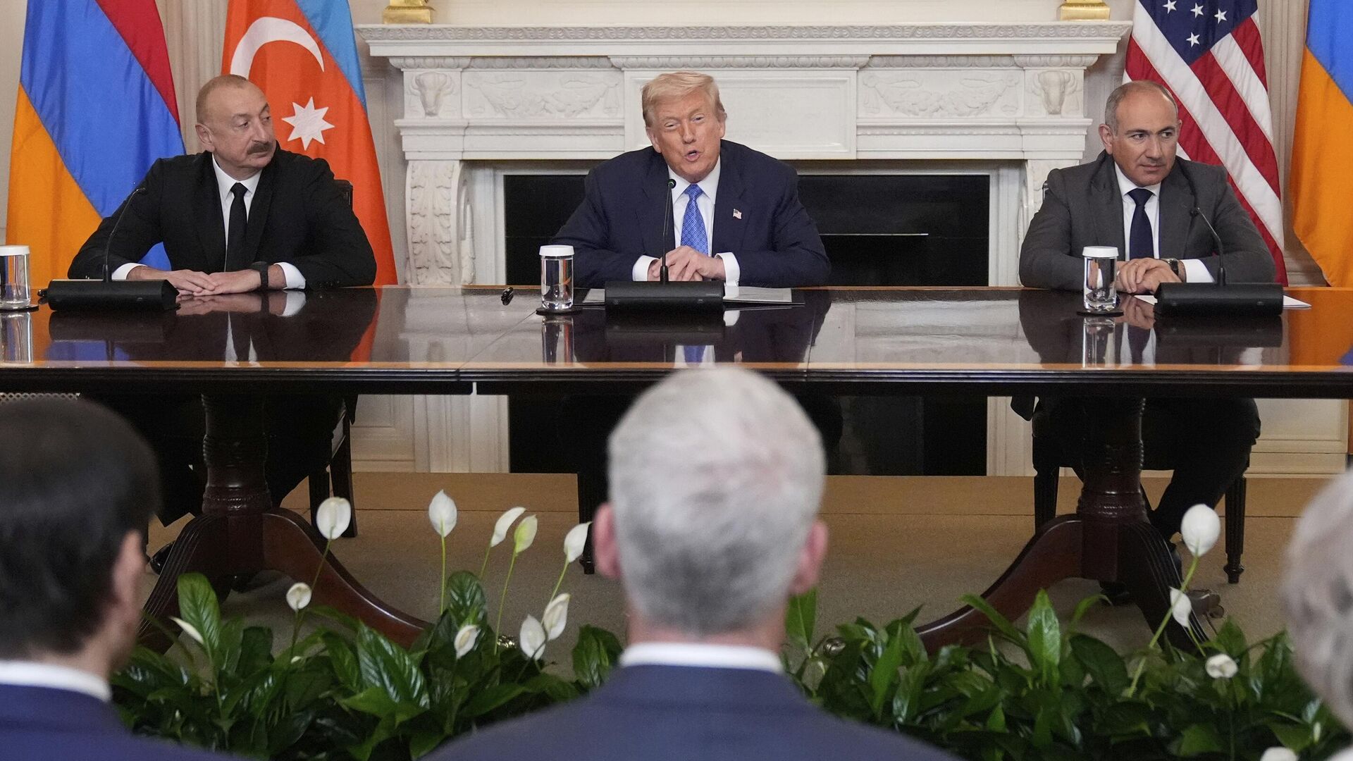 Трехсторонняя церемония состоялась в Белом доме в пятницу, 8 августа.