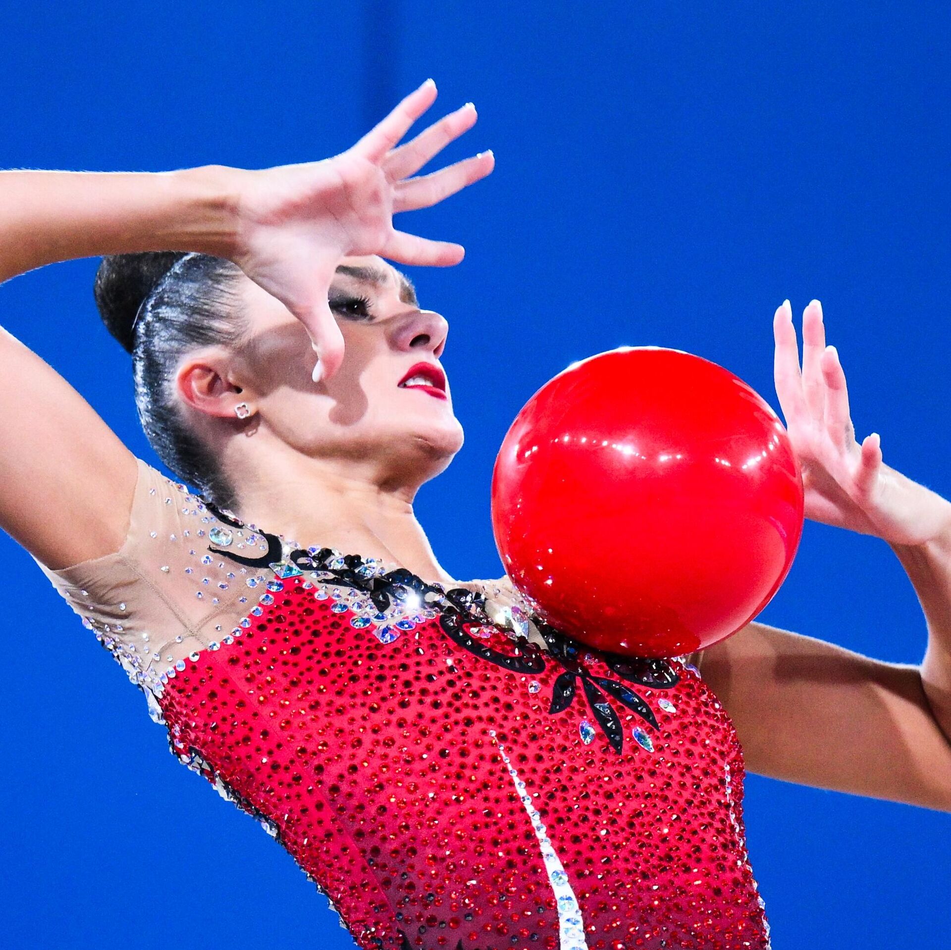 В соревнованиях с мячом бронзовый призер Олимпийских игр в Токио сумела набрать 30,70 балла, оставив позади свою соотечественницу Анастасию Салос (30.20). На третьем месте – россиянка Милена Щенятская (28,90).