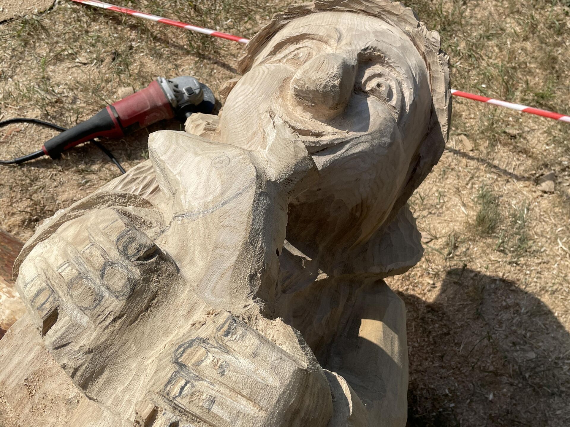 "Все дело в молекулах. Если бы внутри бревна была полость, молекулам было бы куда выходить, а так вот сжались внутри и дали большую трещину. Пришлось укорачивать скульптуру сверху на целых 15 сантиметров, из-за чего пропорции изменились и теперь Емеля щуку вынужден прижимать к груди, а не держать, как было задумано изначально" – рассказал мастер резьбы по дереву из Октябрьского района Андрей Афанасенко.