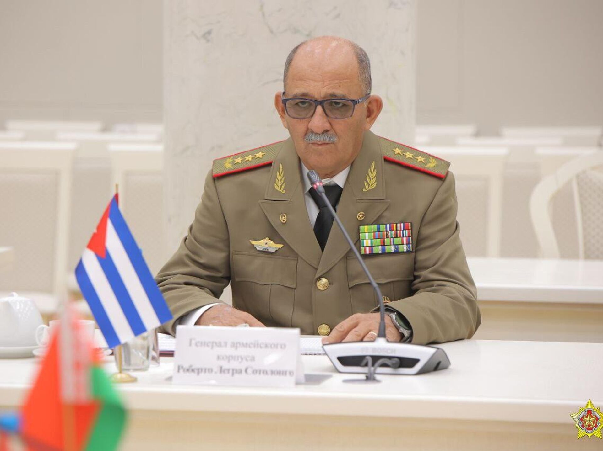 14:58 07.10.2025 (обновлено: 15:12 07.10.2025) В Минске пройдет встреча генерала армейского корпуса Кубы Роберто Легра Сотолонго с министром обороны Беларуси, генерал-лейтенантом Виктором Хрениным.