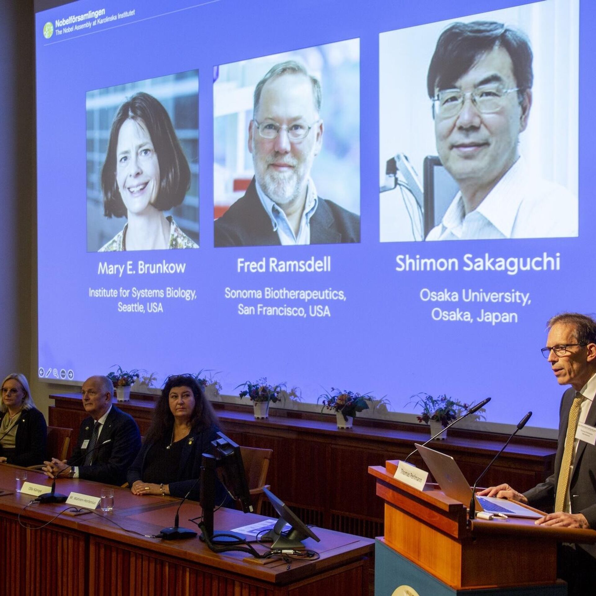 Брунков (1961 года рождения) работает в Институте системной биологии (Сиэтл, США), Рамсделл (1960) является научным руководителем компании Sonoma Biotherapeutics (Сан-Франциско, США), а Сакагучи (1951) работает в Университете Осаки.