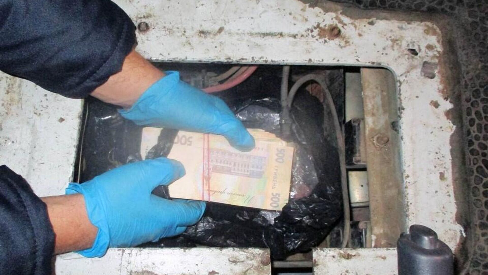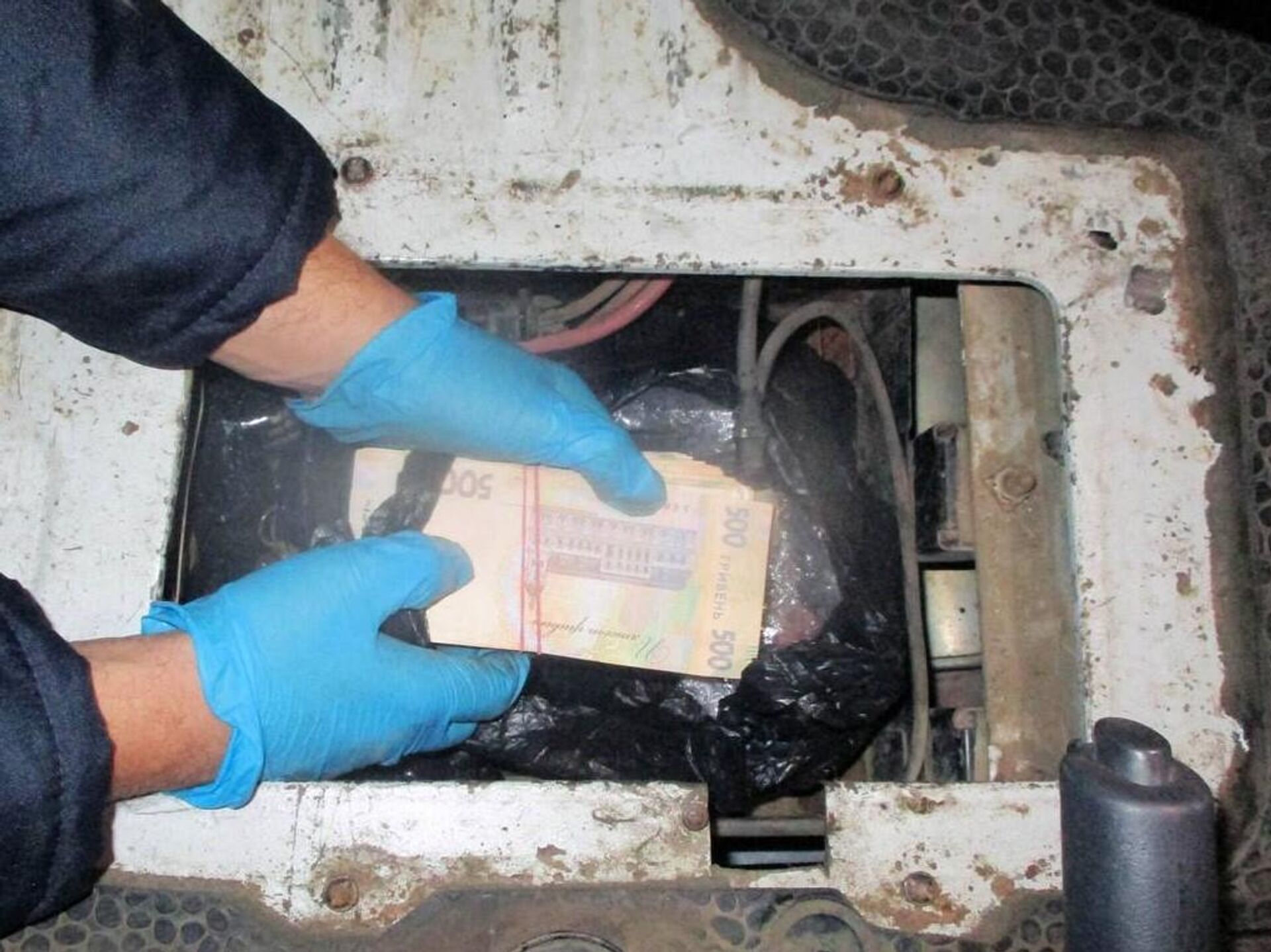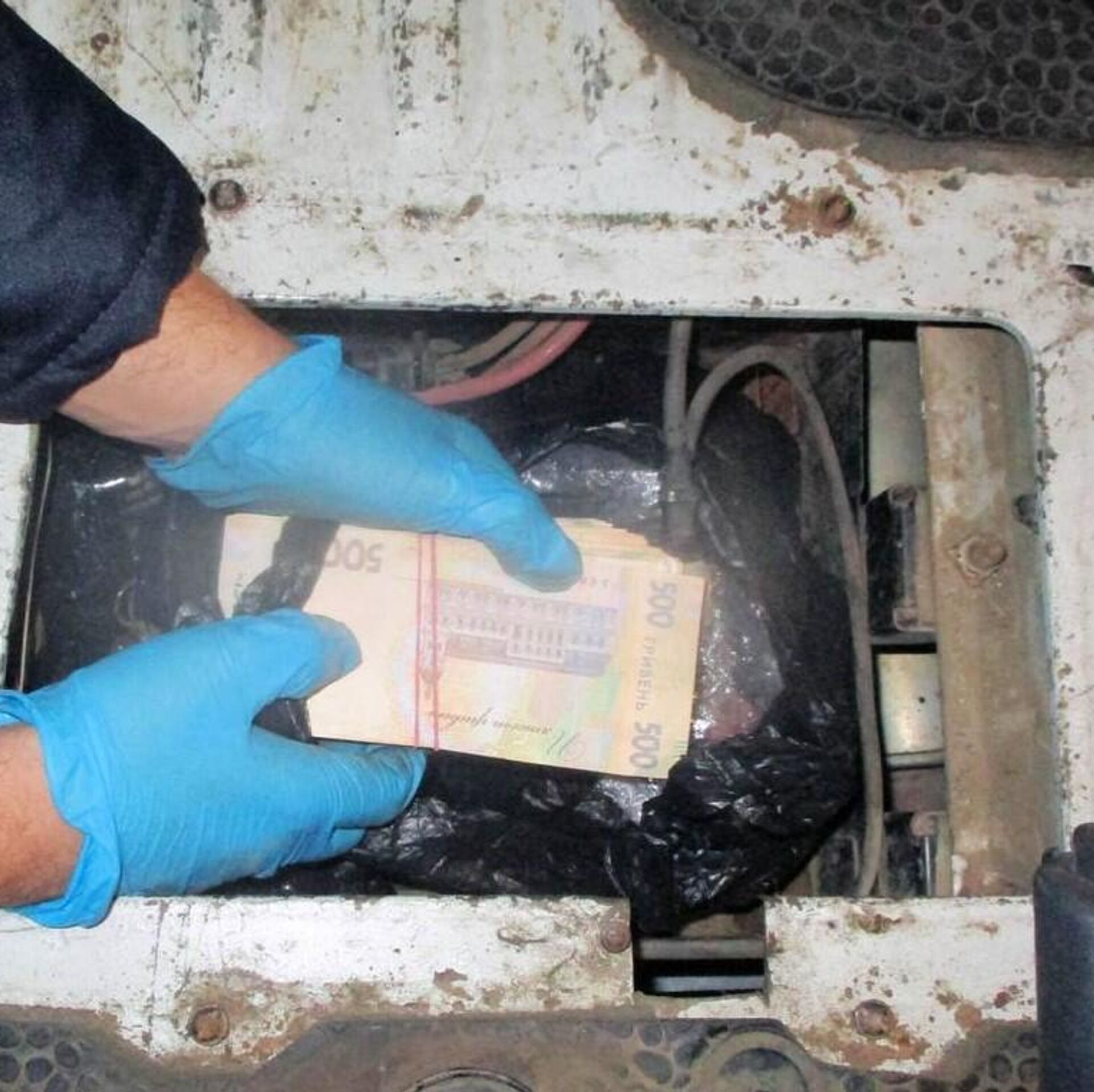 Пакет с украинскими гривнами был спрятан в специально оборудованном в корпусе автомобиля тайнике.