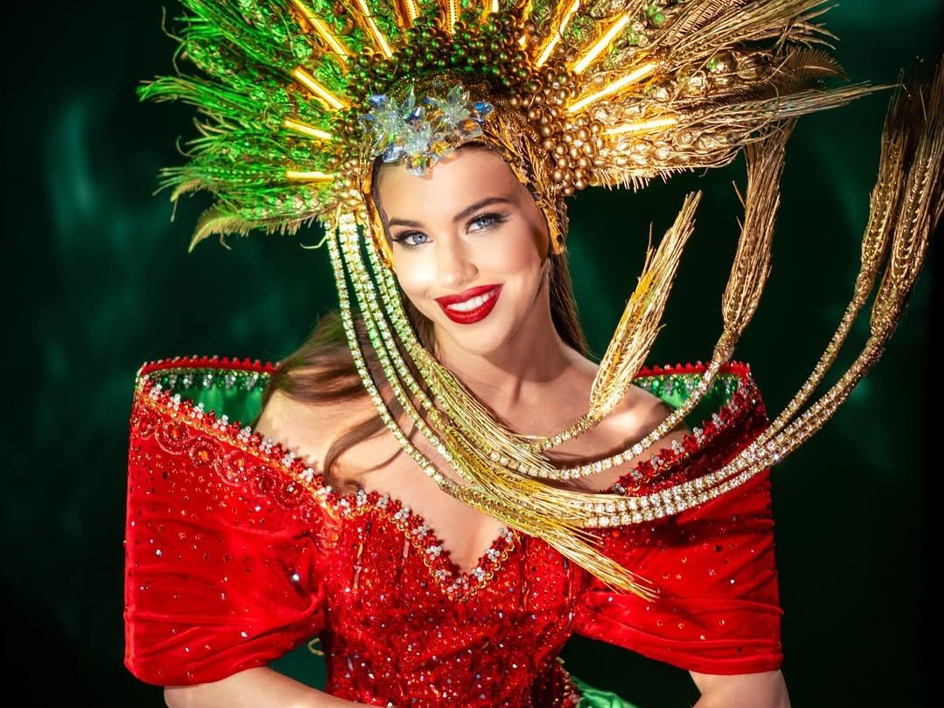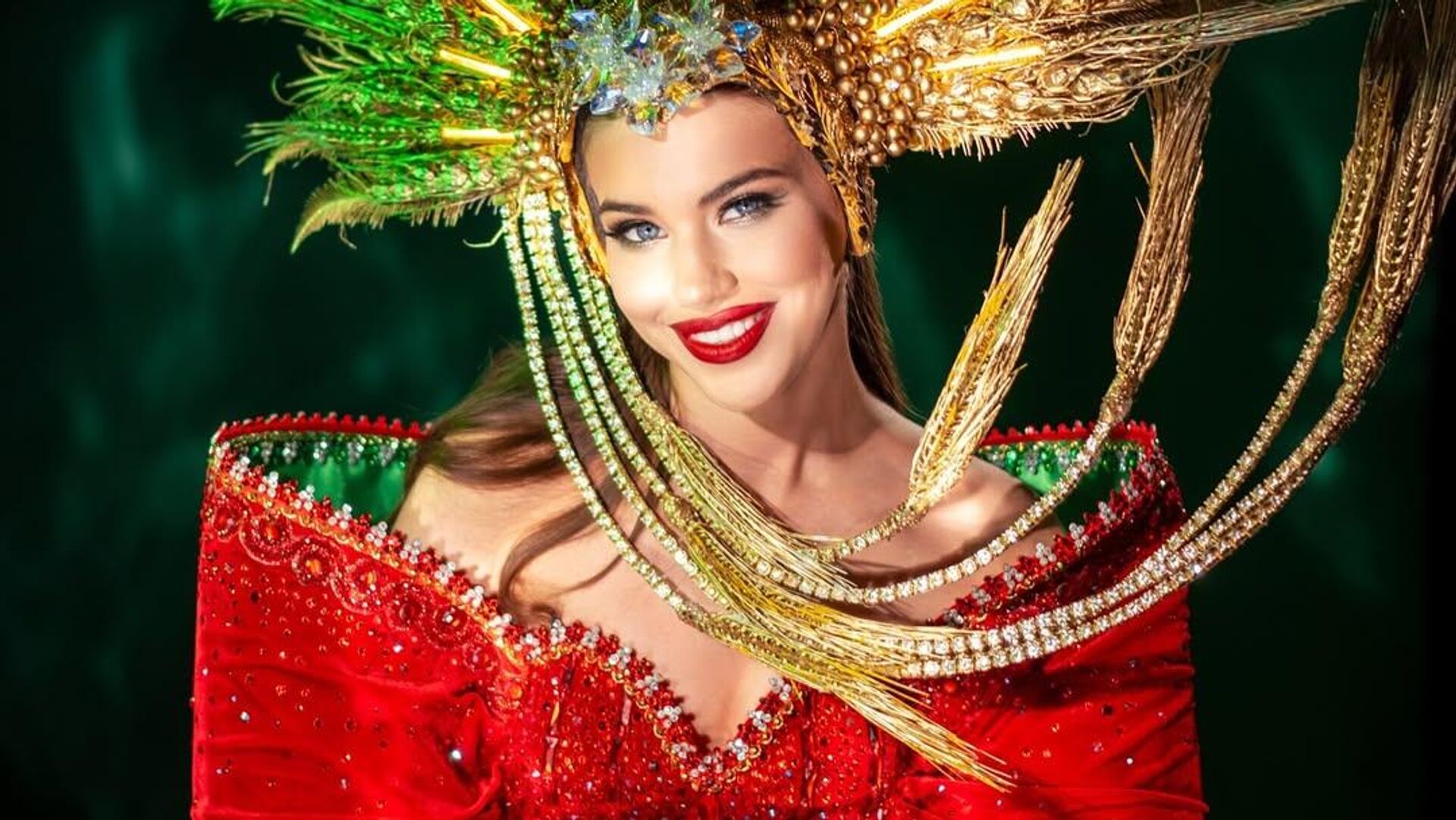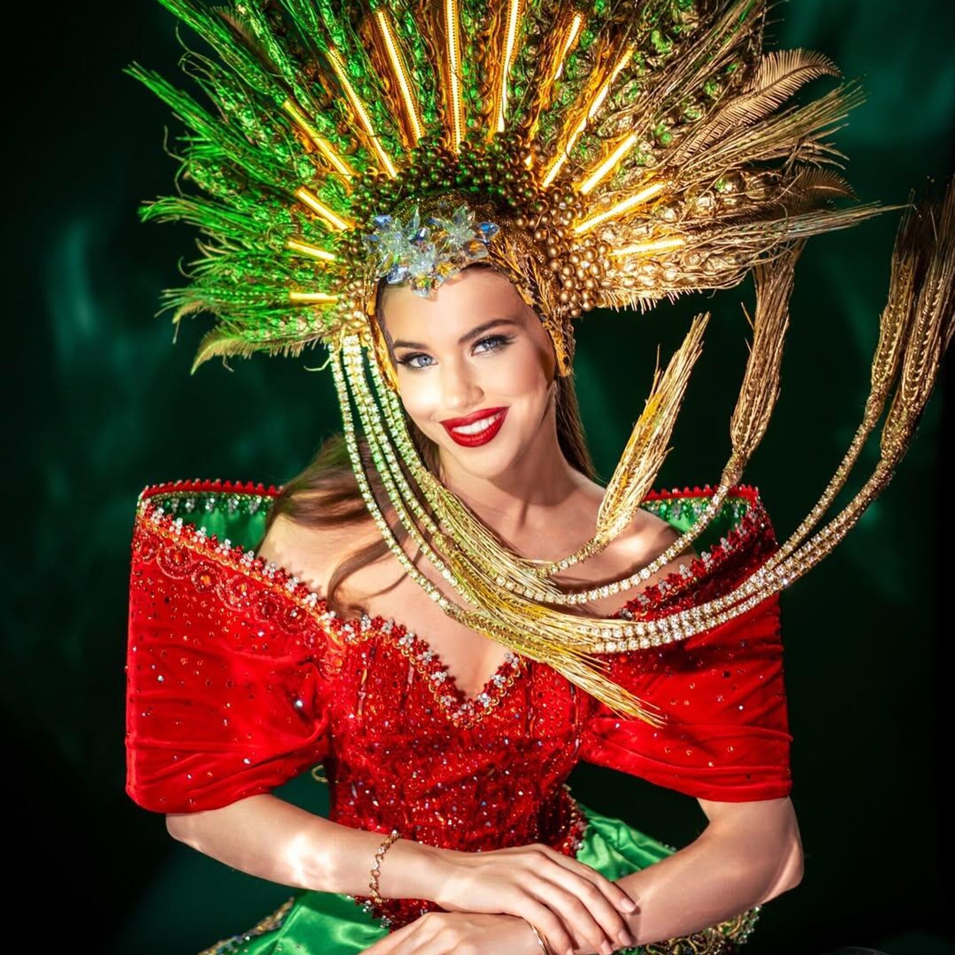 "Мисс Беларусь" Алена Кучерук в национальном костюме на конкурсе "Мисс Вселенная".Оригинальный наряд для белоруски в цветах государственного герба и флага создал дизайнер Дмитрий Титушкин. - Sputnik Беларусь