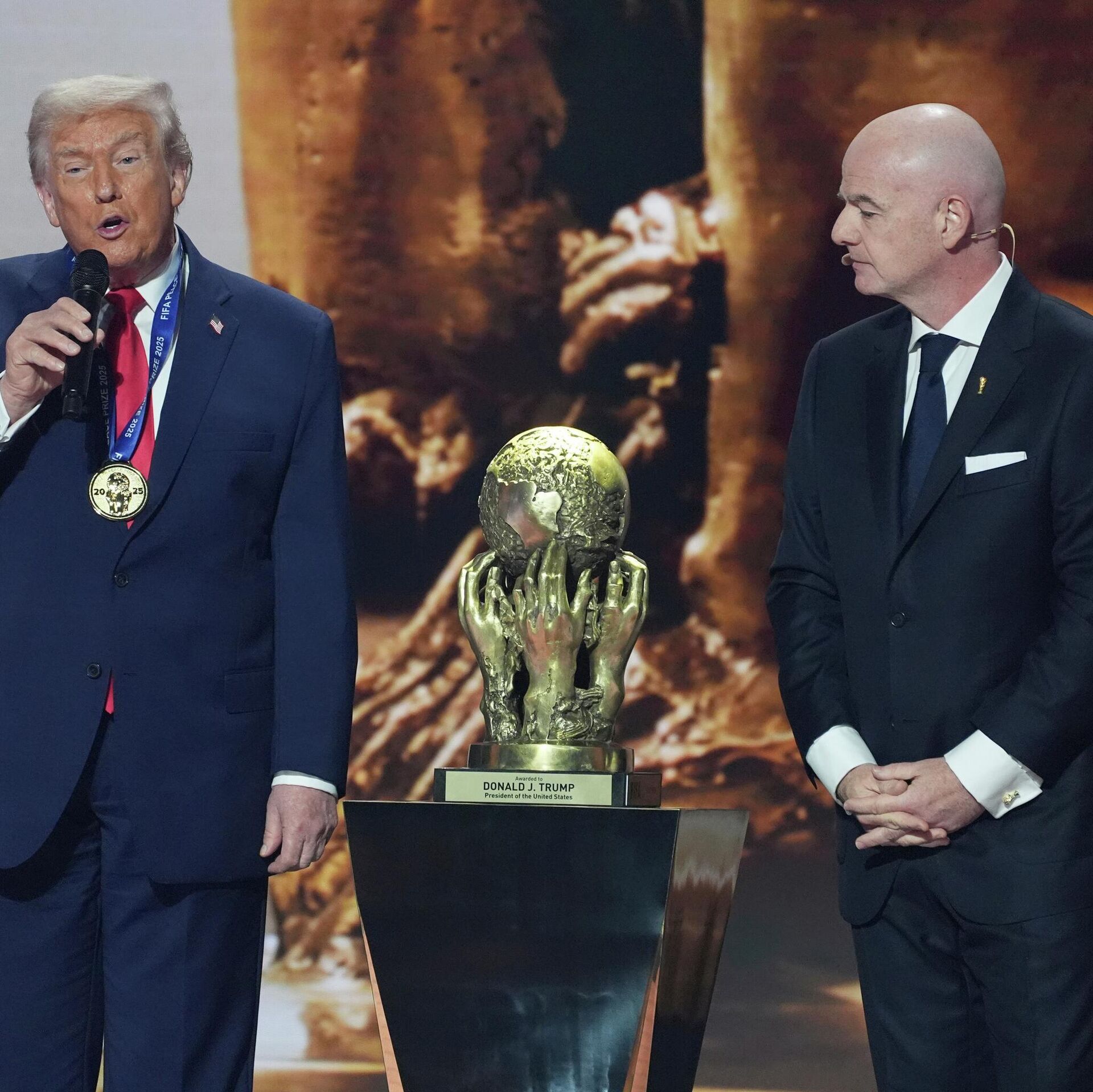 Вручение состоялось в пятницу в Вашингтоне во время жеребьевки чемпионата мира по футболу 2026 года. 05.12.2025, Sputnik Беларусь