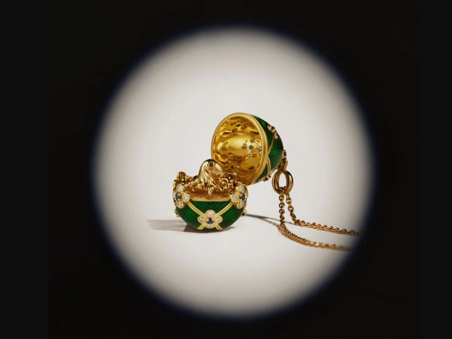 19:33 06.12.2025 (обновлено: 19:38 06.12.2025) Стоимость кулона, инкрустированного бриллиантами и сапфирами, составляет более 19 тысяч долларов США.