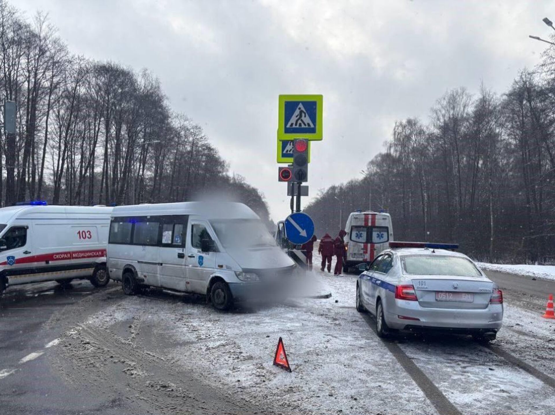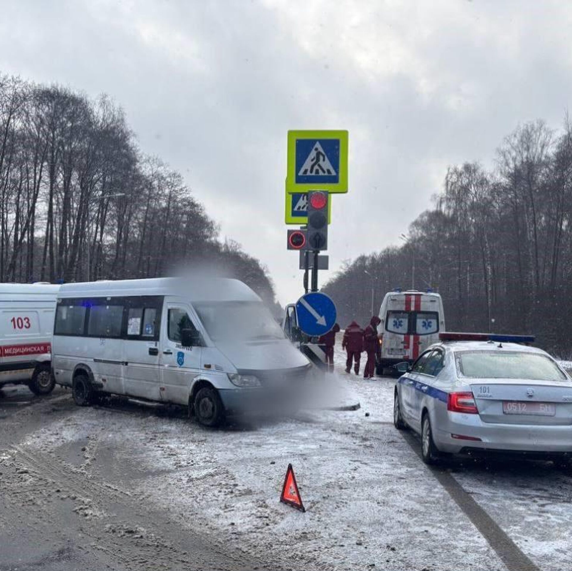 В результате происшествия двое пассажиров маршрутки были доставлены в учреждение здравоохранения для оценки состояния здоровья. 06.01.2026, Sputnik Беларусь