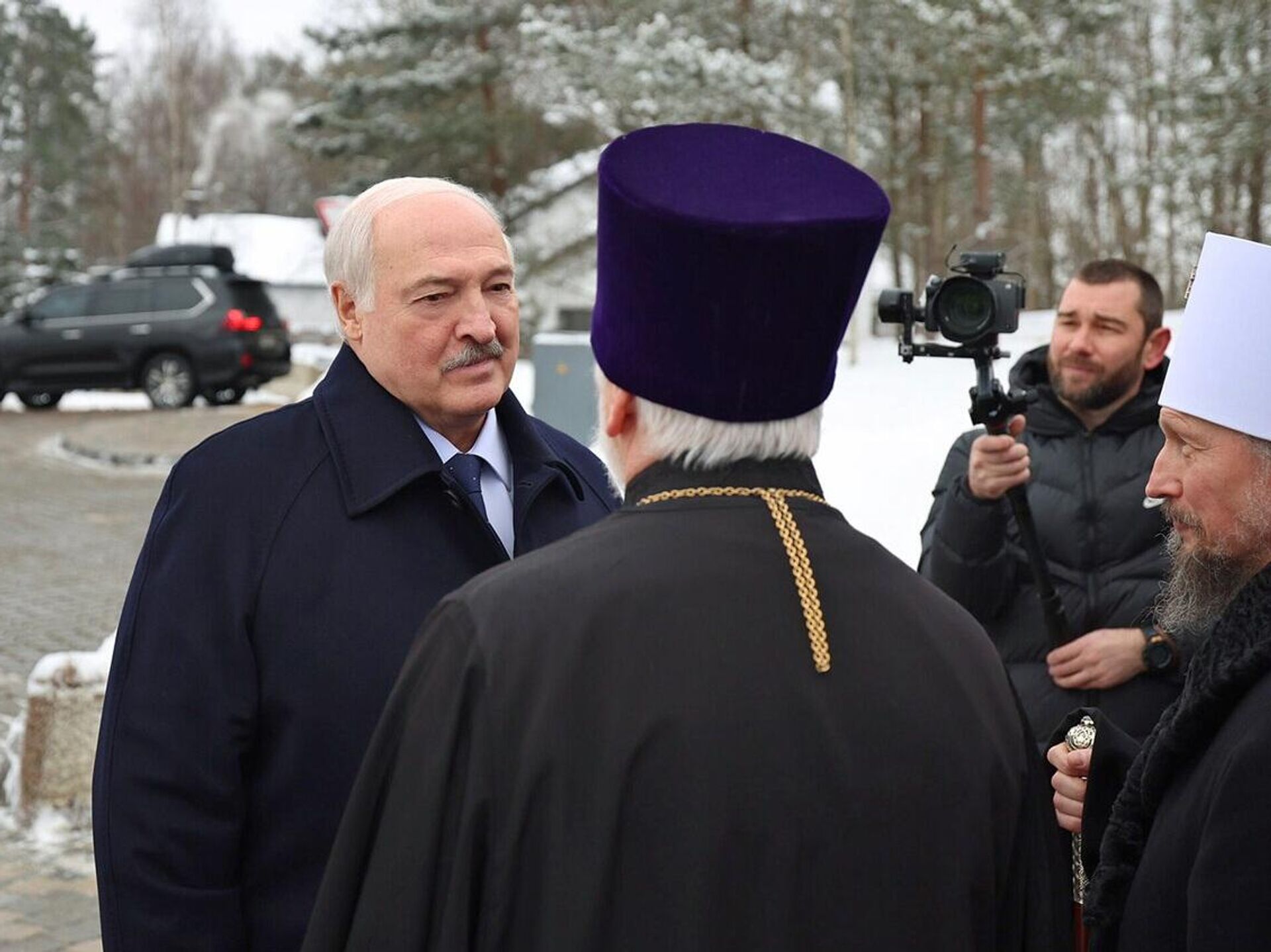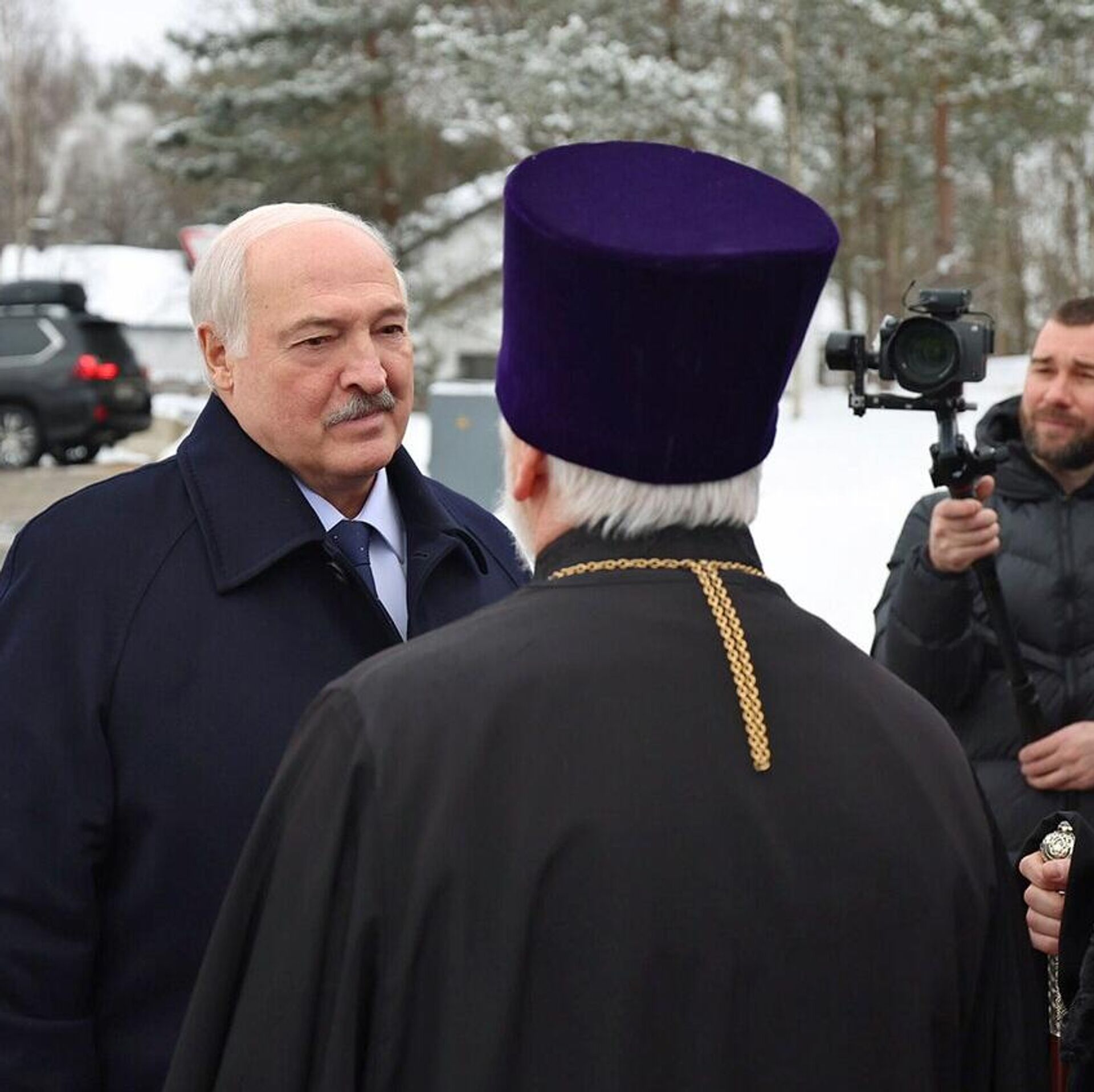По традиции, возле храма главу государства встречал предстоятель Белорусской православной церкви митрополит Минский и Заславский Вениамин.