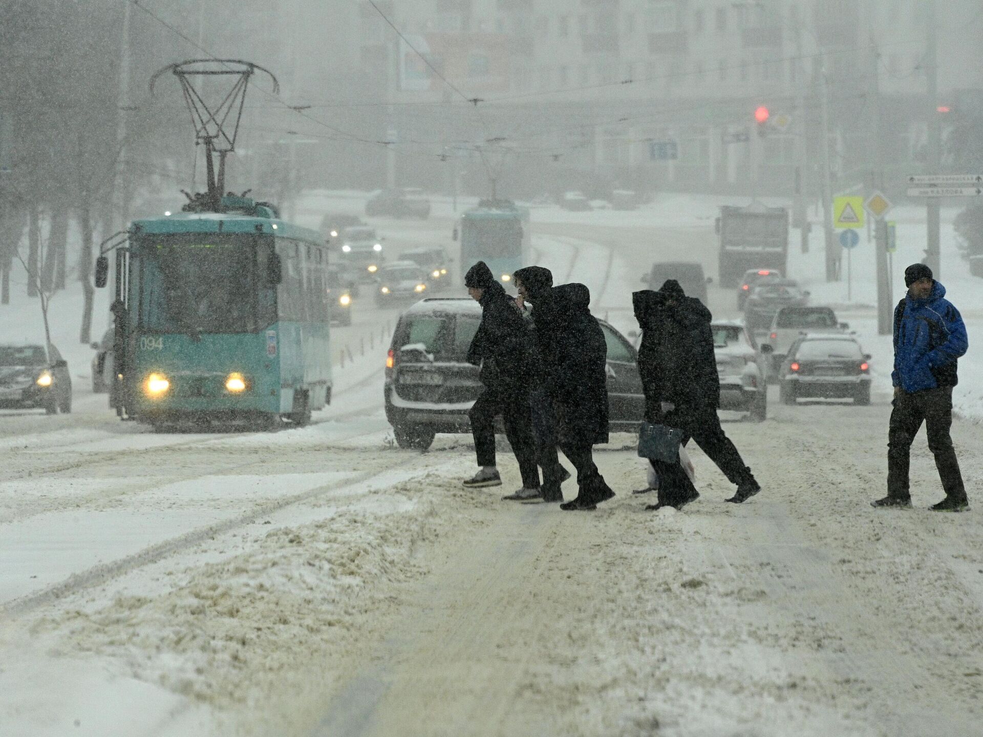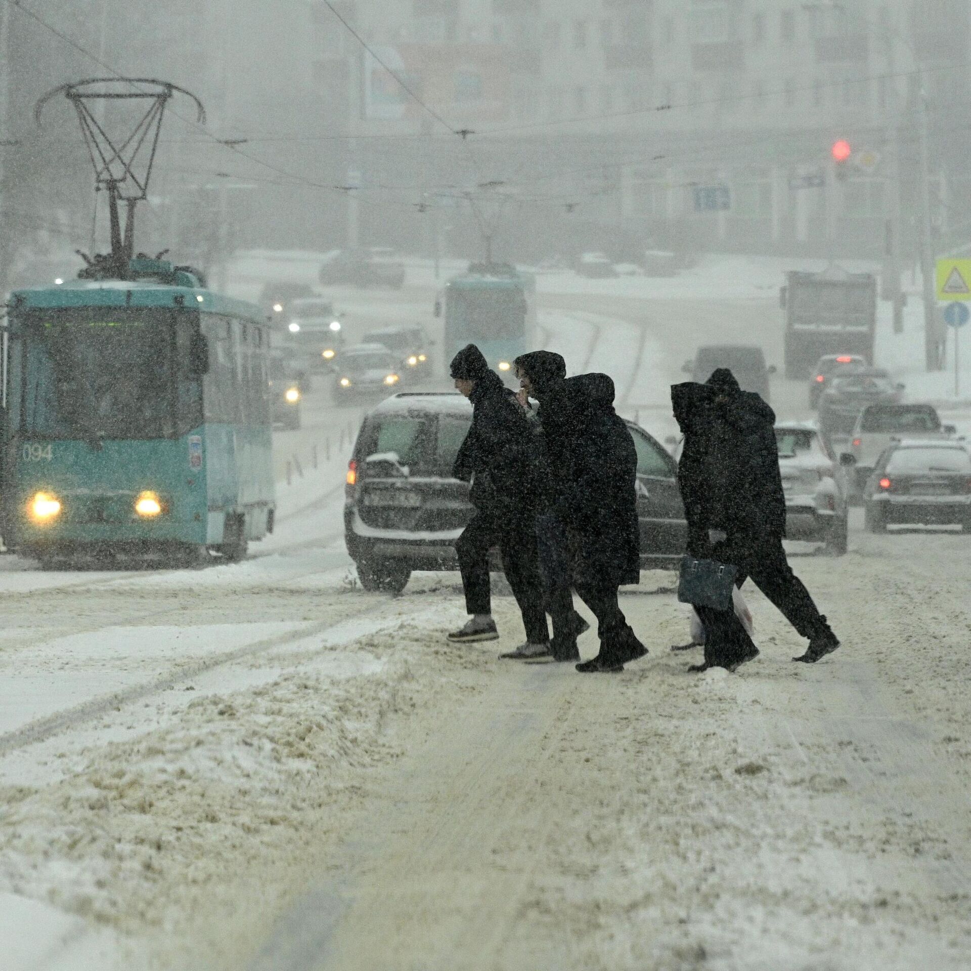 Многие автобусы и троллейбусы из-за "проделок" непогоды вынуждены были пойти в обход своих маршрутов, а трамваи не могли продолжать путь. 08.01.2026, Sputnik Беларусь