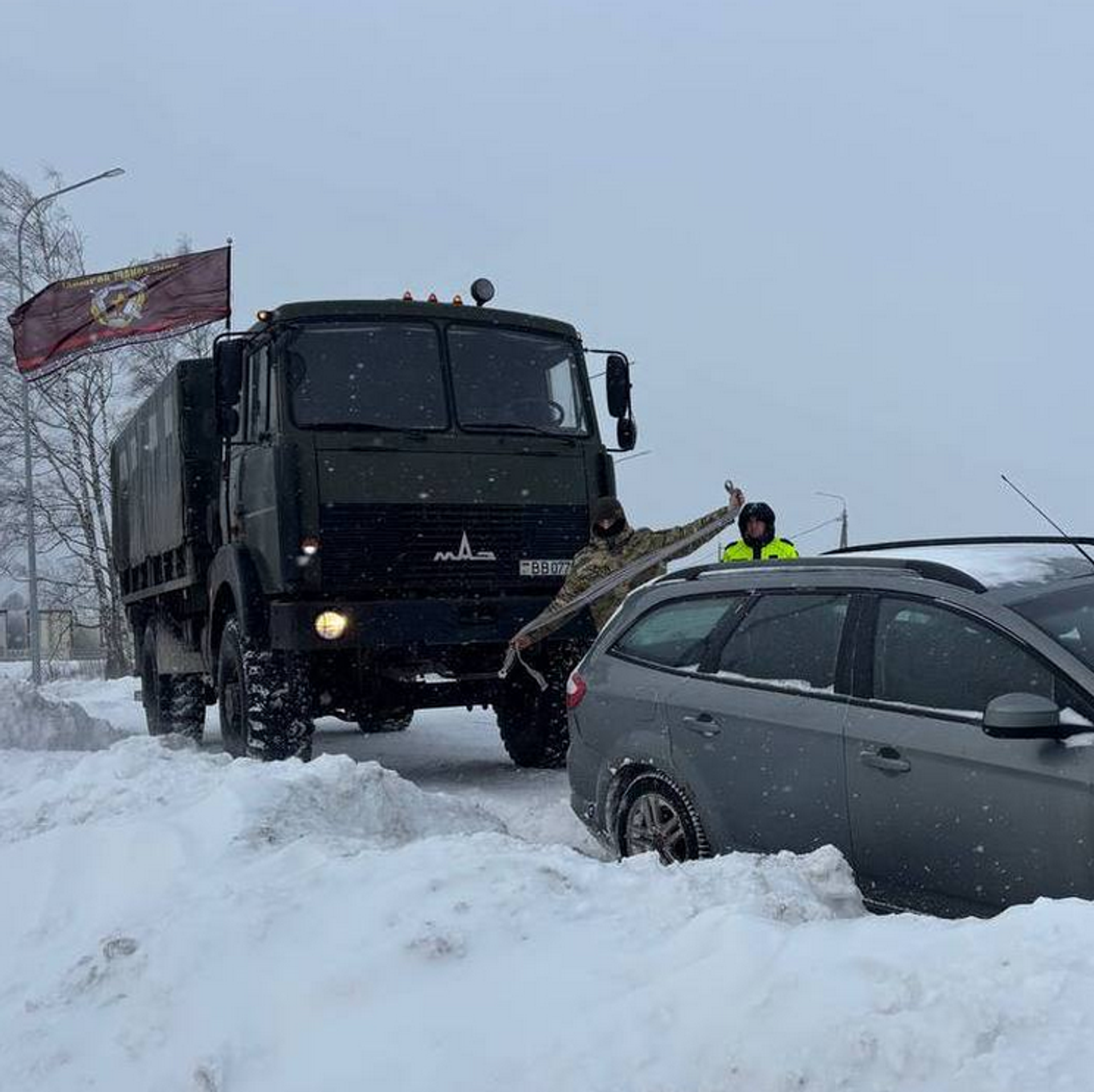 вывести на дороги тяжелую технику для расчистки дорог, в том числе вездеходы, БТРы, "Волат" и "Тигр". Специальная техника поступила в распоряжение ГАИ для оказания помощи при расчистке дорог.