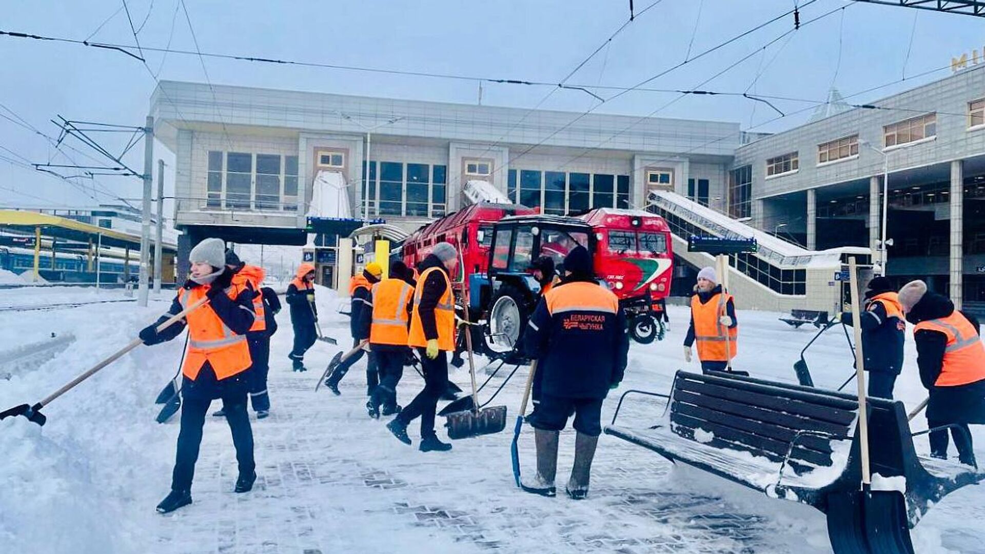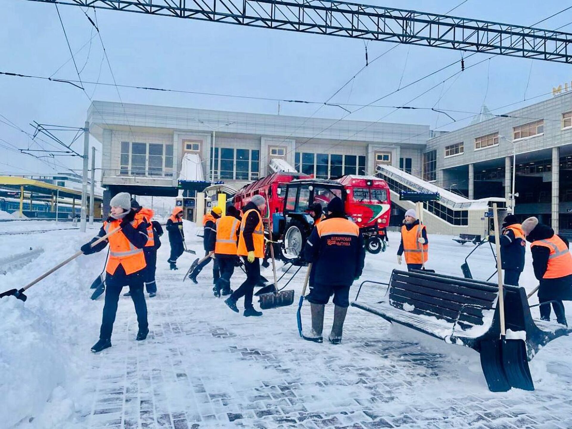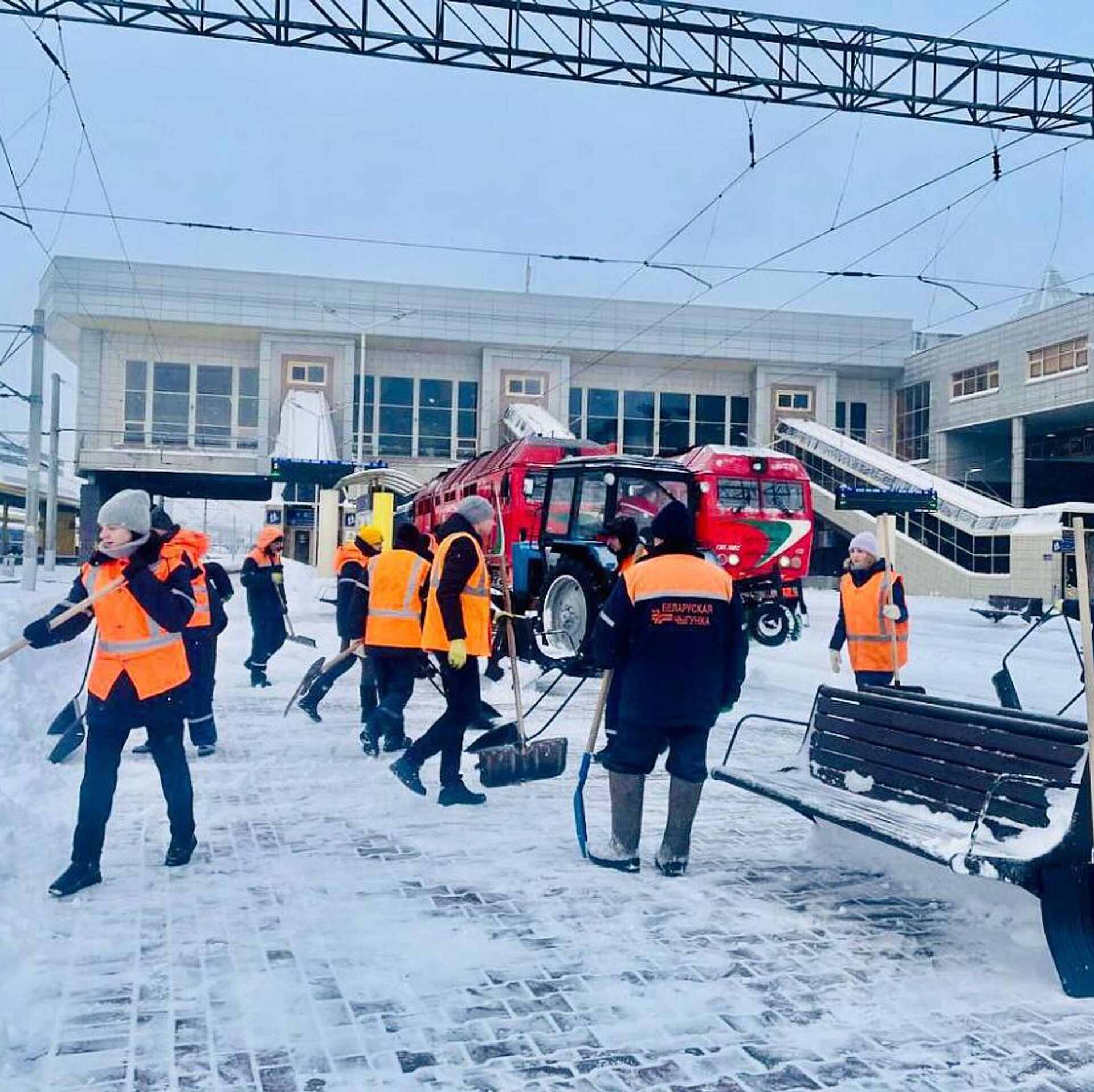 Ежедневно в уборке снега на станциях задействовано около 1,4 тысячи железнодорожников. 13.01.2026, Sputnik Беларусь