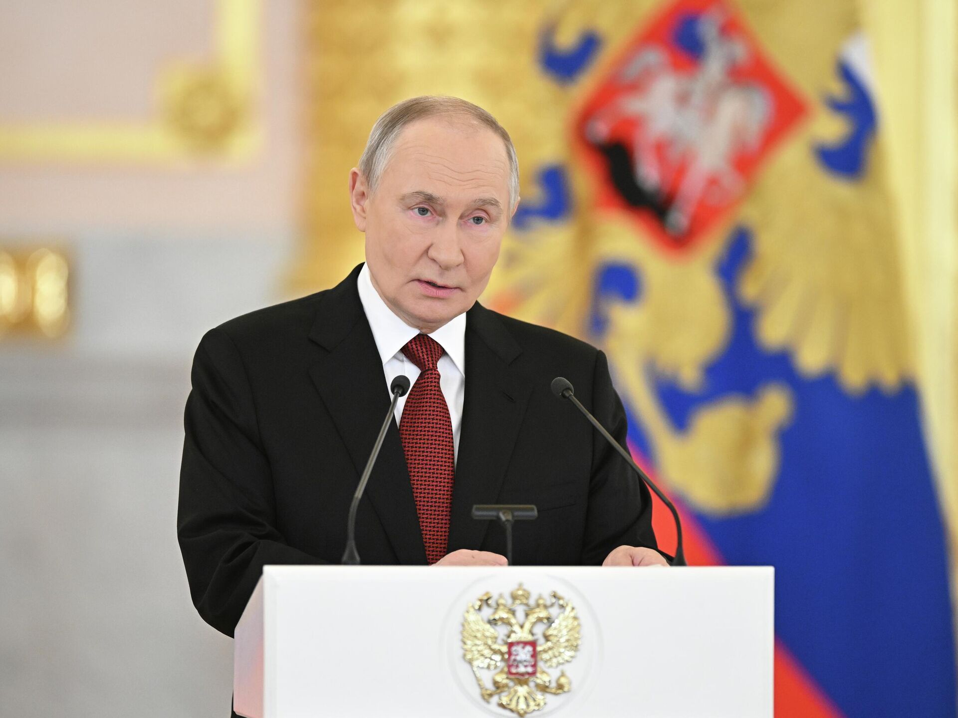 Путин в четверг в Кремле принимает верительные грамоты у 34 вновь прибывших иностранных послов. Церемония проходит в Александровском зале Большого Кремлевского дворца.