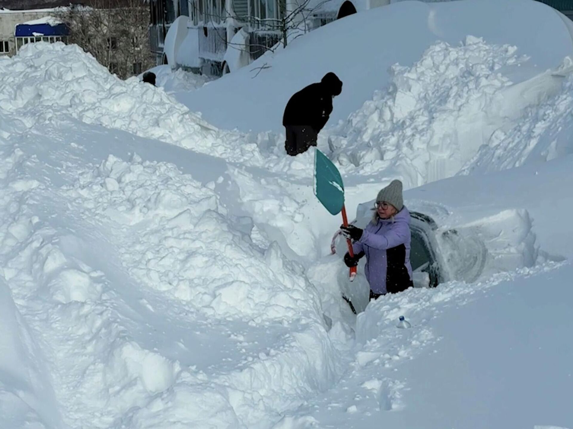 Агентство Ruptly публикует видеоролик, в котором показано, как жители Петропавловска-Камчатского откапывают автомобили, которые полностью засыпало снегом и проделывают проходы в огромных сугробах.
