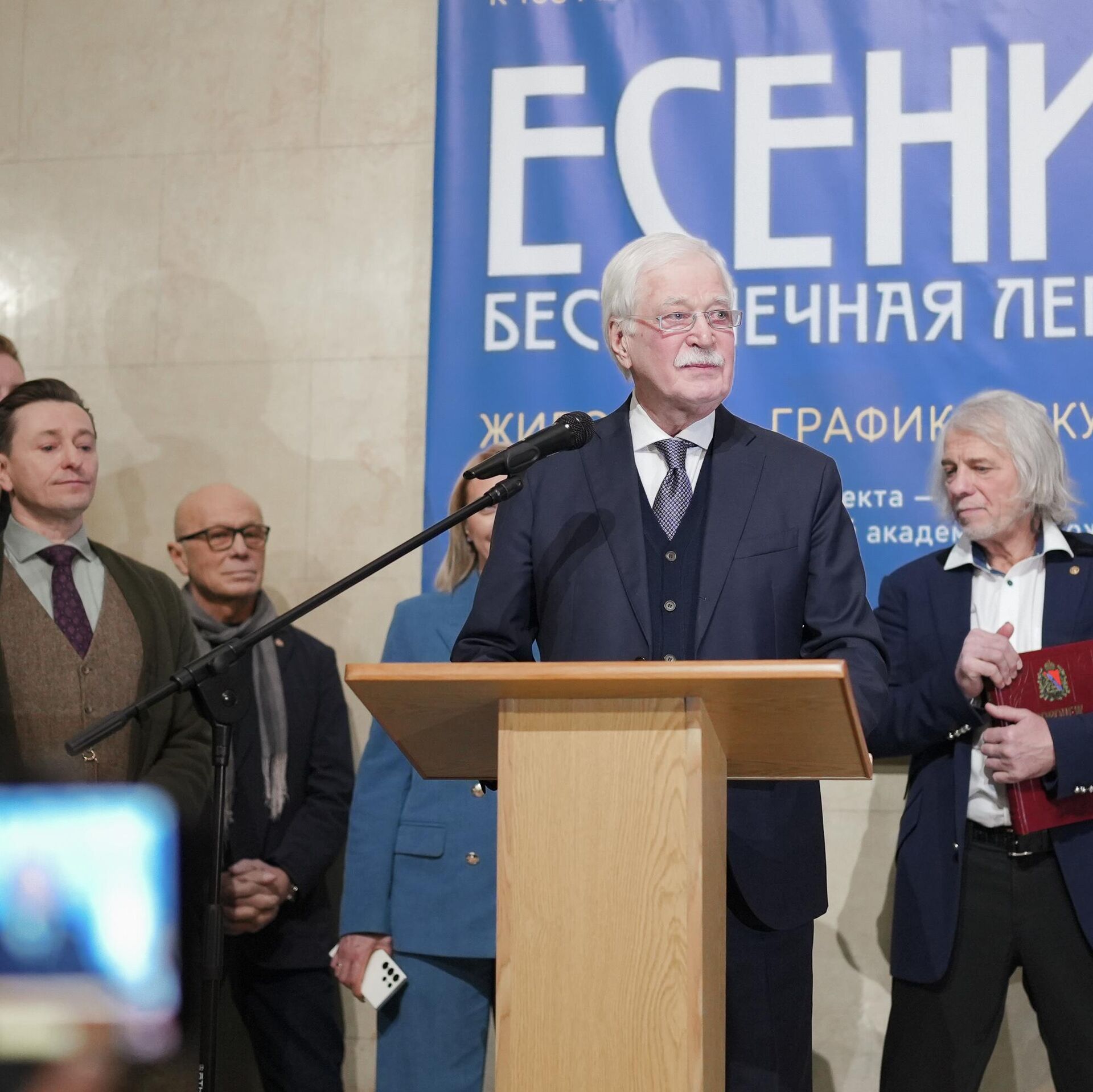 На церемонии открытия выставки Борис Грызлов подарил Национальному художественному музею Беларуси бюст Сергея Есенина.