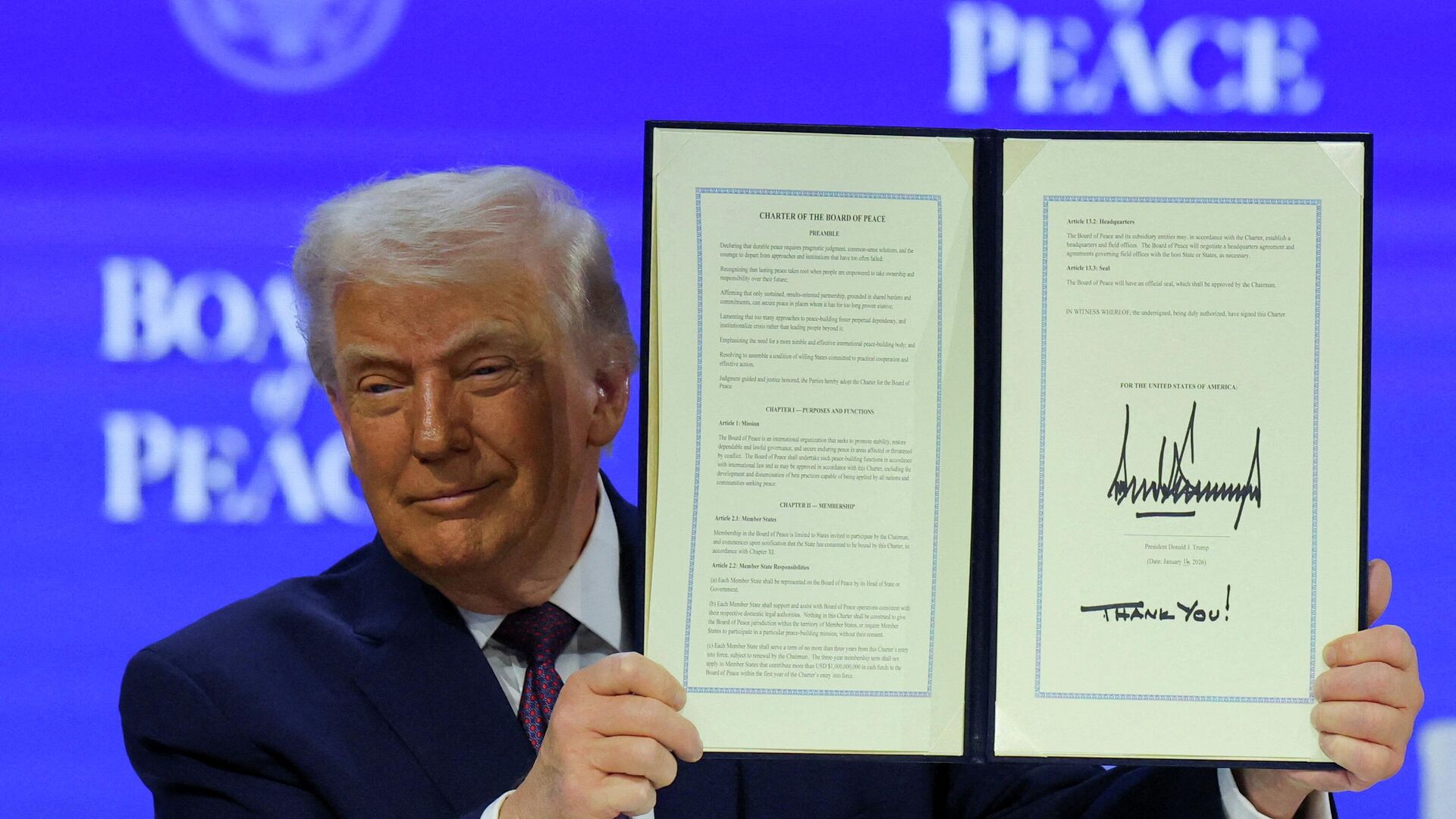 МИНСК, 22 янв - Sputnik. Устав сформированного США Совета мира по Газе в Давосе подписали 18 стран, следует из трансляции мероприятия.Помимо США, документ подписали Армения, Аргентина, Азербайджан, Болгария, Венгрия, Индонезия, Иордания, Казахстан, самопровозглашенное Косово, Пакистан, Парагвай, Катар, Саудовская Аравия, Турция, ОАЭ, Узбекистан и Монголия.Американский лидер Дональд Трамп при этом заявил, что взаимодействие Совета мира с Организацией Объединенных Наций может создать уникальный формат для глобального урегулирования конфликтов.Пресс-секретарь Белого дома Каролин Левитт объявила, что устав Совета вступил в силу и структура получила статус официальной международной организации. Также к ней могут присоединиться и другие страны. Ранее президент США предложил создать новую международную структуру и направил предложения по участию главам ряда государств. Предложения поступили, в частности, президентам России и Беларуси.Он сообщал, что в структуру стремятся войти как большие страны, так и "великие люди", и высказывал уверенность, что Совет мира по Газе станет "самым престижным" в истории.По задумке Трампа, новая структура должна решить вопрос урегулирования конфликта в секторе Газа.Самые интересные и важные новости ищите в нашем Telegram-канале и Viber. Также следите за нами в Дзен!