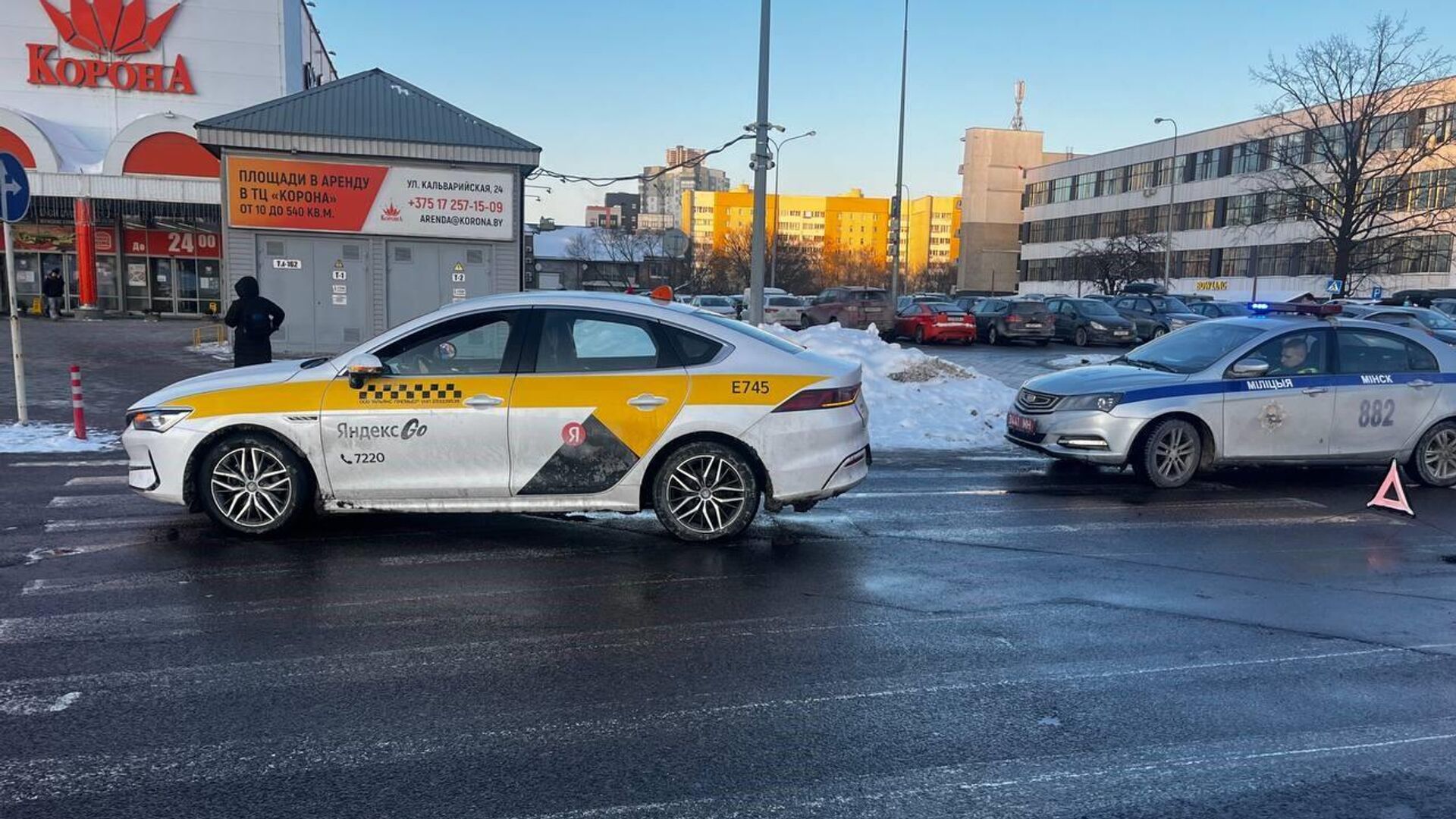 По предварительной информации, авария произошла по вине таксиста, который не предоставил преимущество пешеходу. 25.01.2026, Sputnik Беларусь