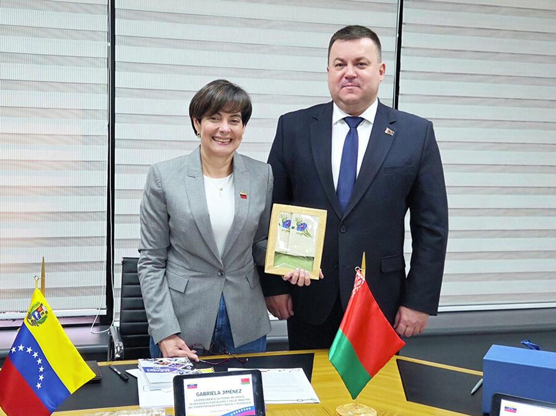 МИНСК, 26 янв – Sputnik. Посол Беларуси в Венесуэле Дмитрий Деревинский встретился с секторальным вице-президентом этой страны – министром науки и технологий Габриэлой Сервилия Хименес Рамирес, сообщила пресс-служба белорусского МИД.