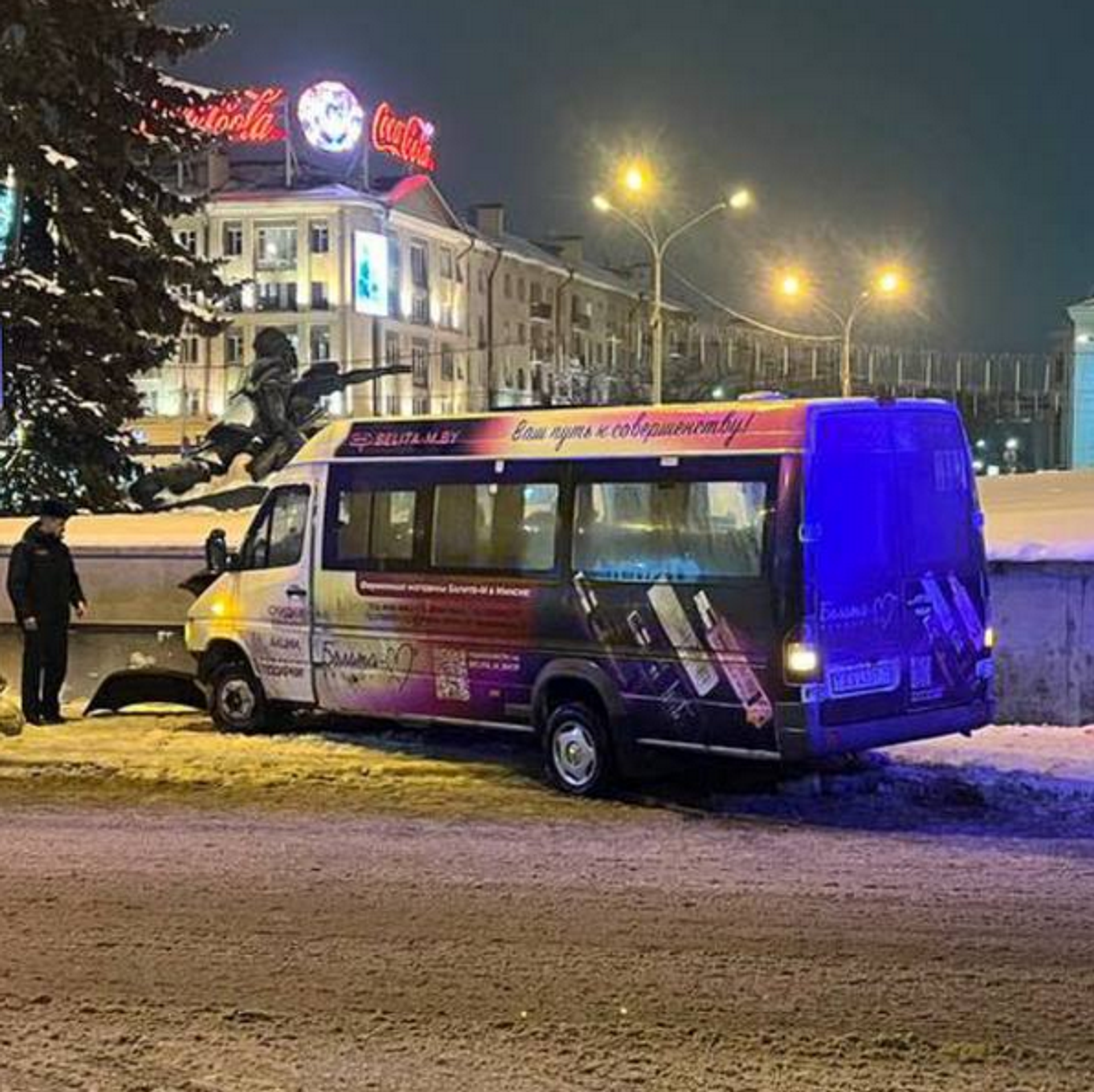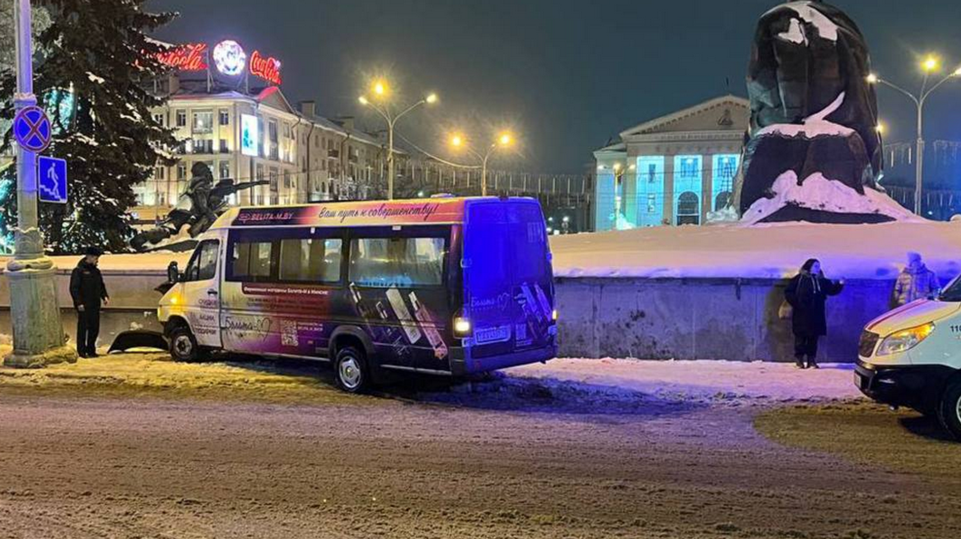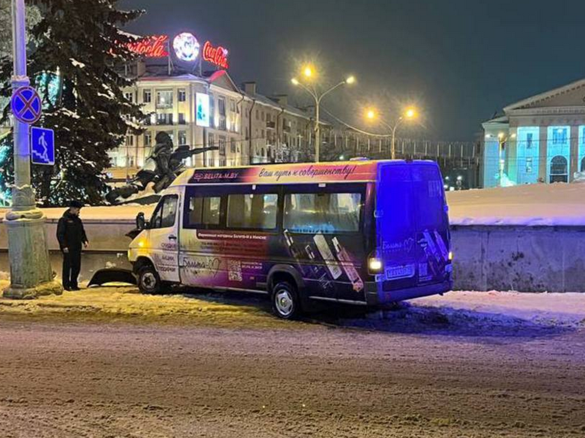 Авария произошла накануне вечером. Около 21:20 водитель маршрутного автомобиля Mercedes ехал по улице Веры Хоружей, но, поворачивая налево на улицу Якуба Коласа, не учел дорожные и погодные условия. В результате маршрутка выехала за пределы проезжей части и врезалась в осветительную мачту, а также бетонную стену подземного пешеходного перехода.