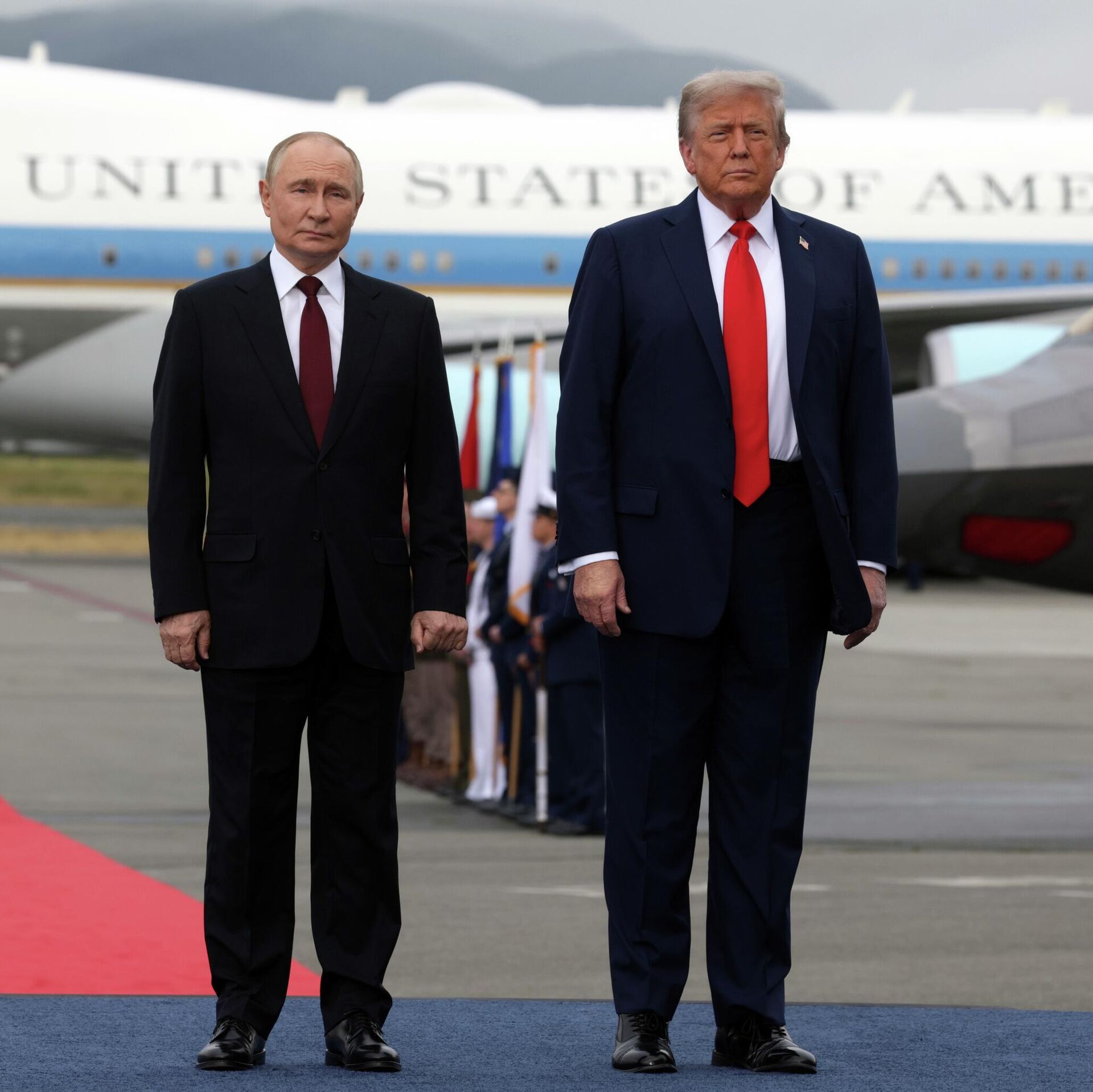 Президенты России и США Владимир Путин и Дональд Трамп 15 августа 2025 года проводят переговоры на военной базе в Анкоридже на Аляске