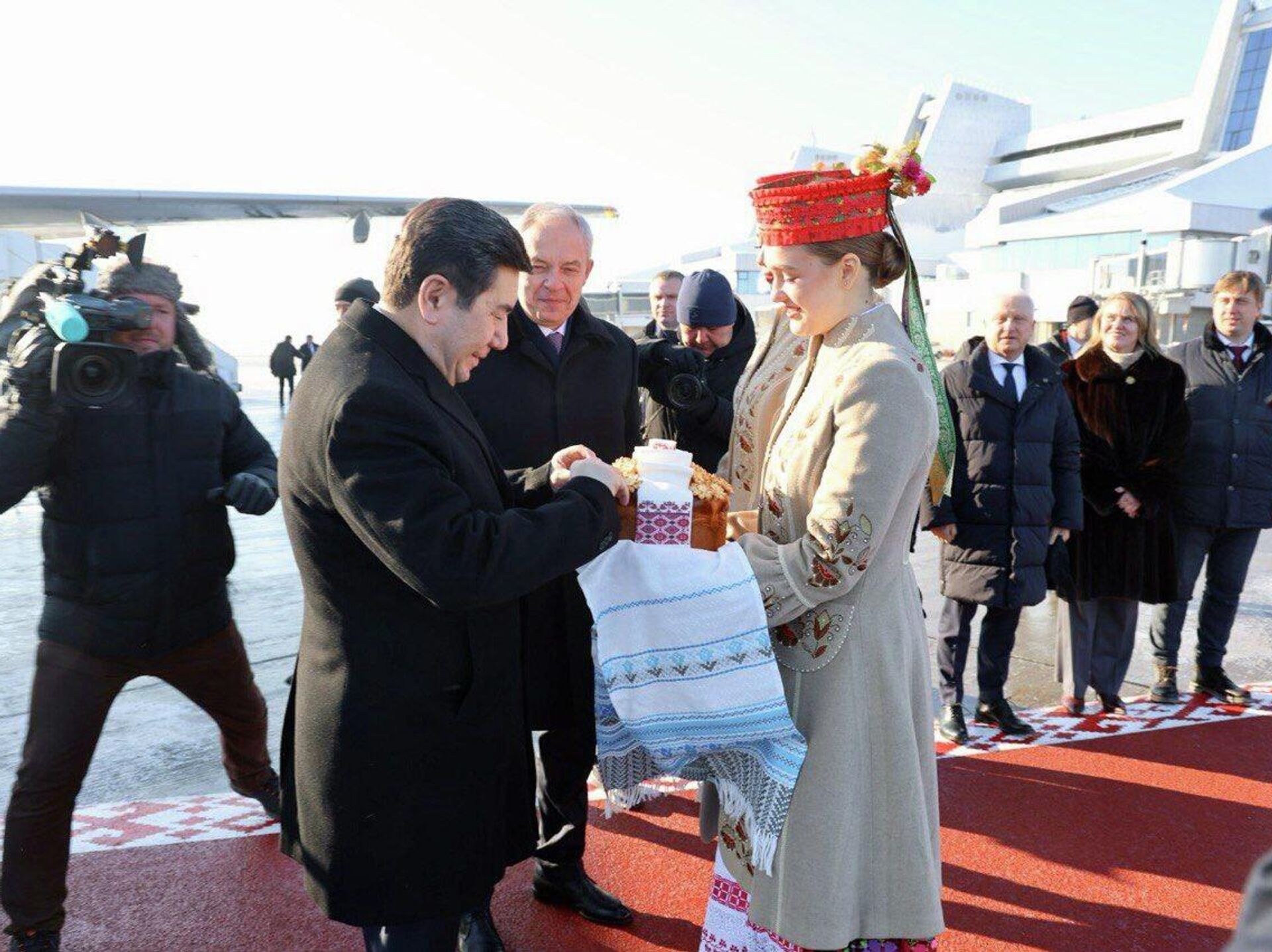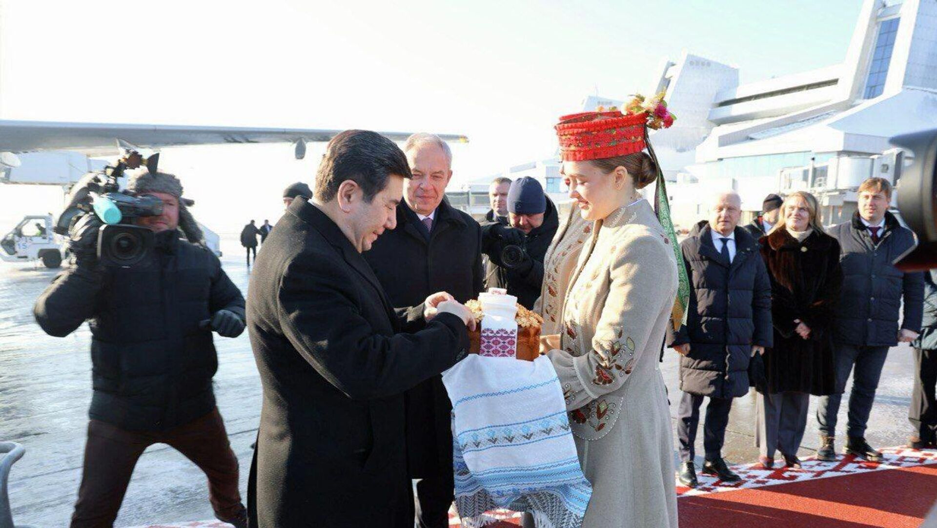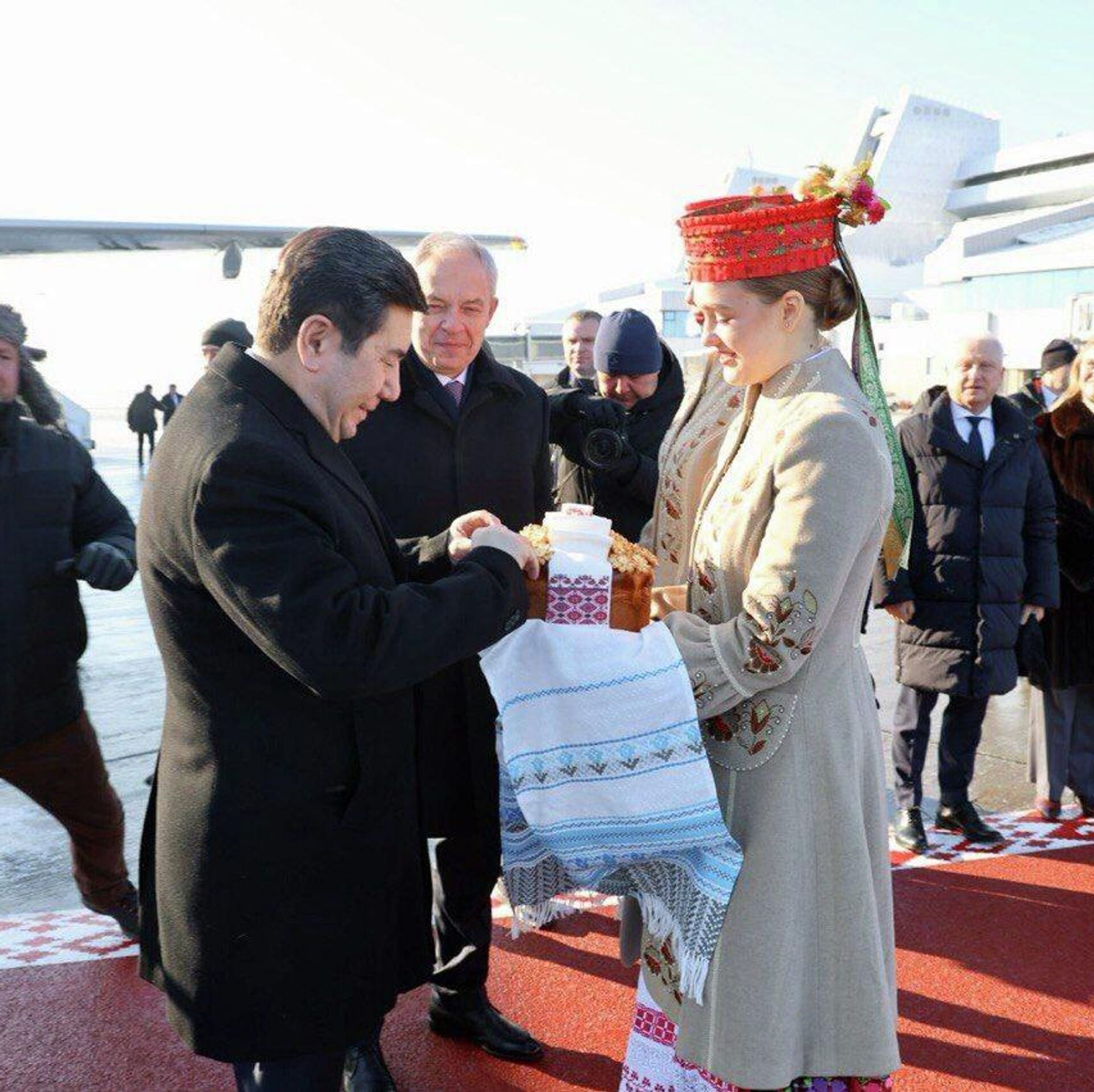 Председатель Палаты представителей Игорь Сергеенко лично встретил у трапа самолета главу Мажилиса Казахстана.