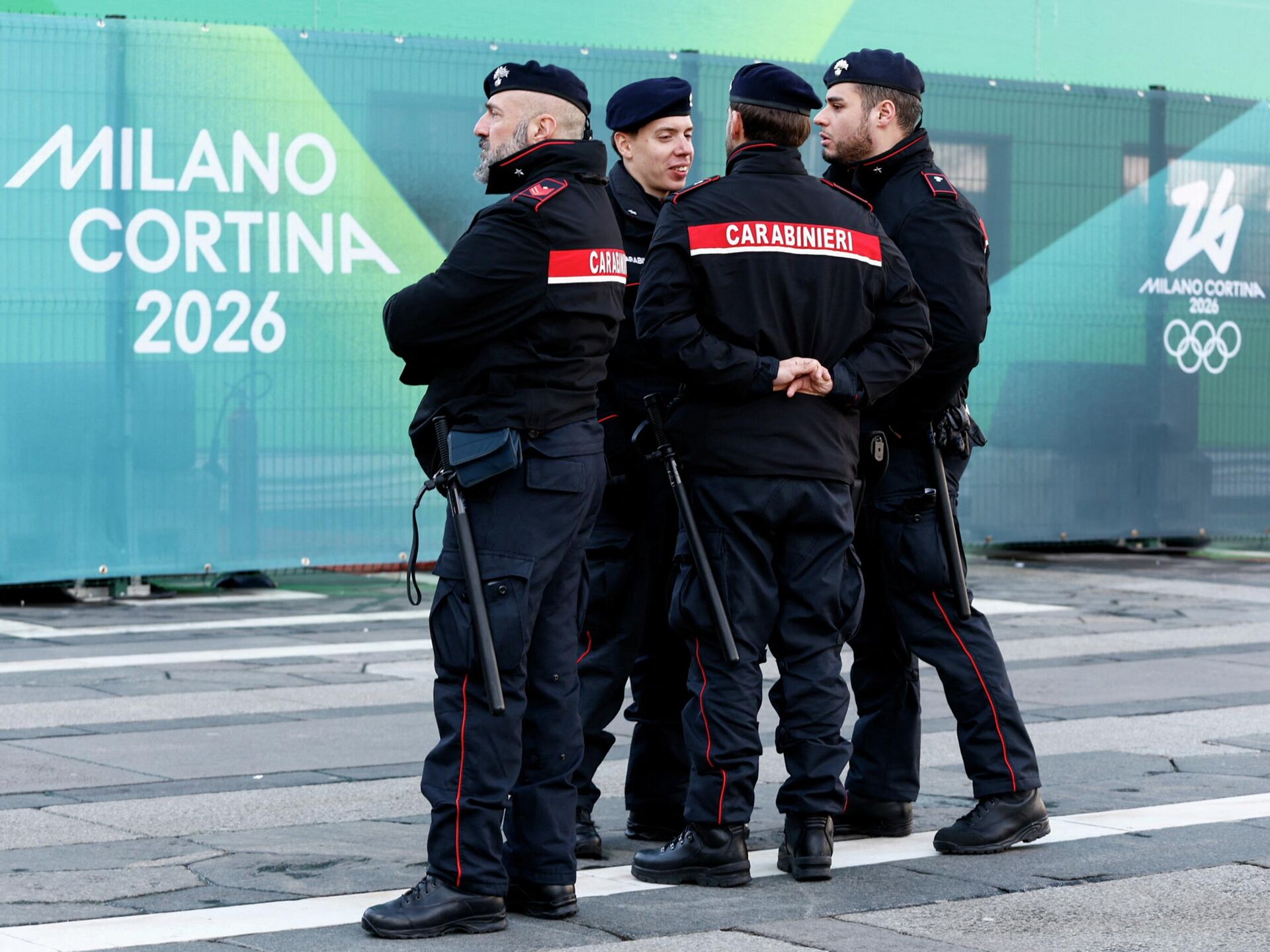 сообщалось, что для обеспечения безопасности в период Олимпийских игр в Италии будет задействовано по меньшей мере шесть тысяч правоохранителей, а также роботы-собаки. Для контроля над территорией планируется введение бесполетной зоны, а также использование дронов и систем воздушного наблюдения.
