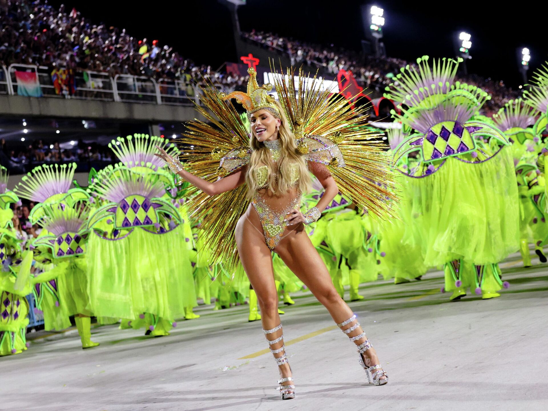 По самбадрому в Рио-де-Жанейро перед тысячами зрителей снова движутся красочные платформы, создатели которых стремятся превзойти друг друга в оригинальности задумки, а вокруг танцуют сотни танцоров в самых экстравагантных нарядах.Традиционно на карнавале в Рио каждая школа самбы выбирает для своего выступления какую-то определенную тему - от фольклорных мотивов, эпизодов из истории, сцен из знаменитых книг или фильмов. Нередко такие выступления вызывают скандал, когда их создатели на злобу дня задаются социальными или политическими вопросами, проблемами экологии или гендерного равенства.Самые эффектные кадры нынешнего карнавала в Рио смотрите в нашей фотоподборке. Самые интересные и важные новости ищите в нашем Telegram-канале, MAX и Viber. Также следите за нами в Дзен!