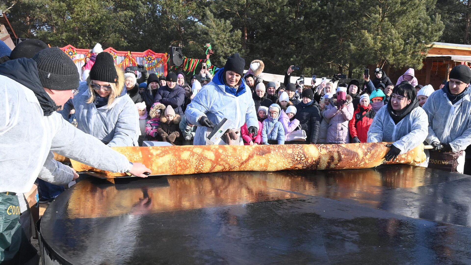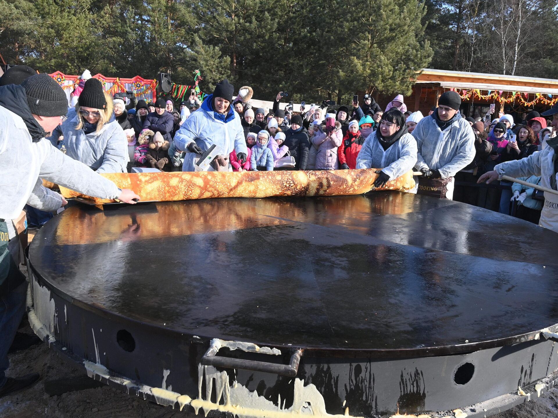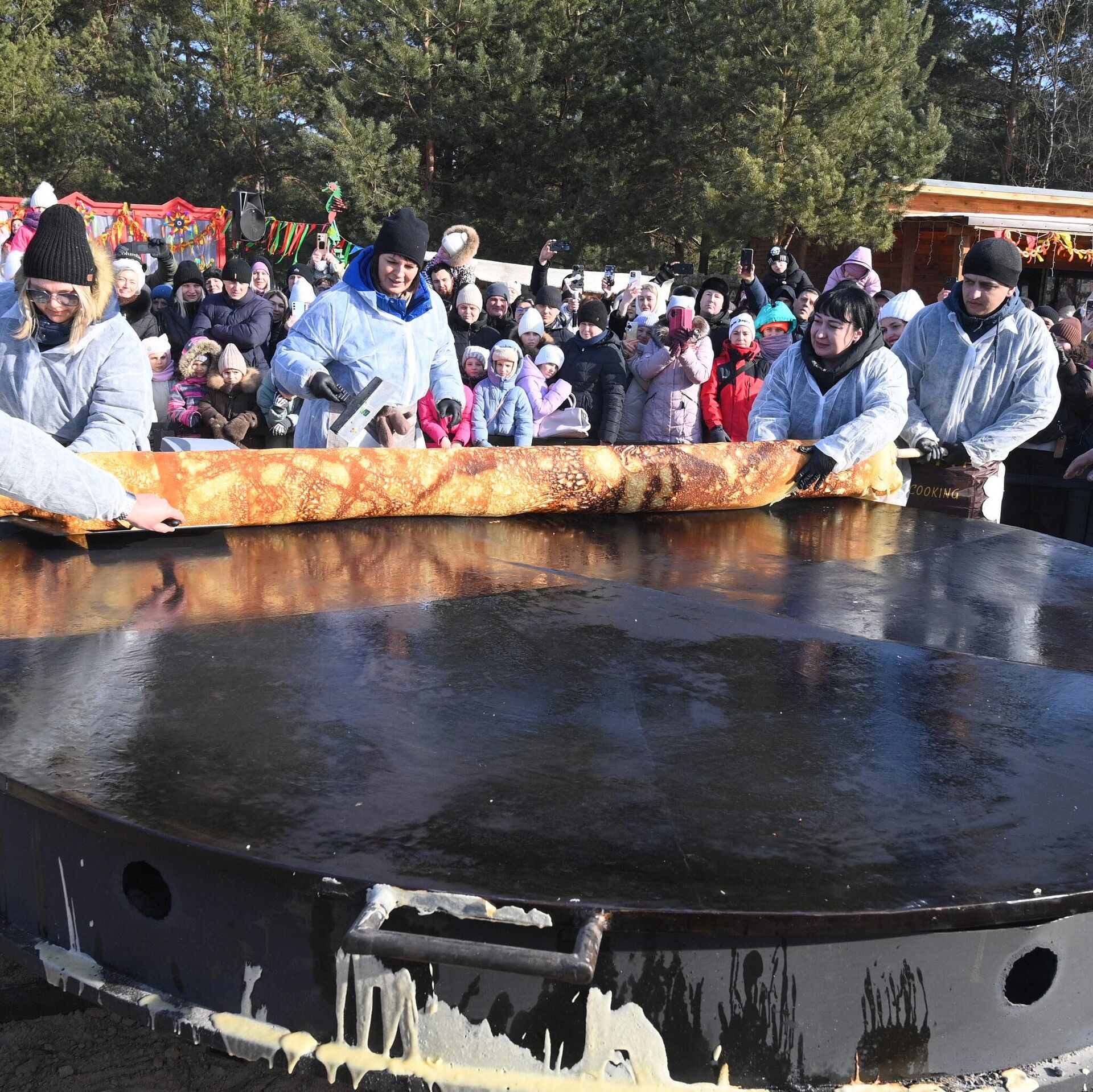 Блин-рекордсмен испекли в Барановичах на Масленицу — масштабные гулянья с традиционными народными забавами и сжиганием чучела прошли в местном парке животных... 21.02.2026, Sputnik Беларусь