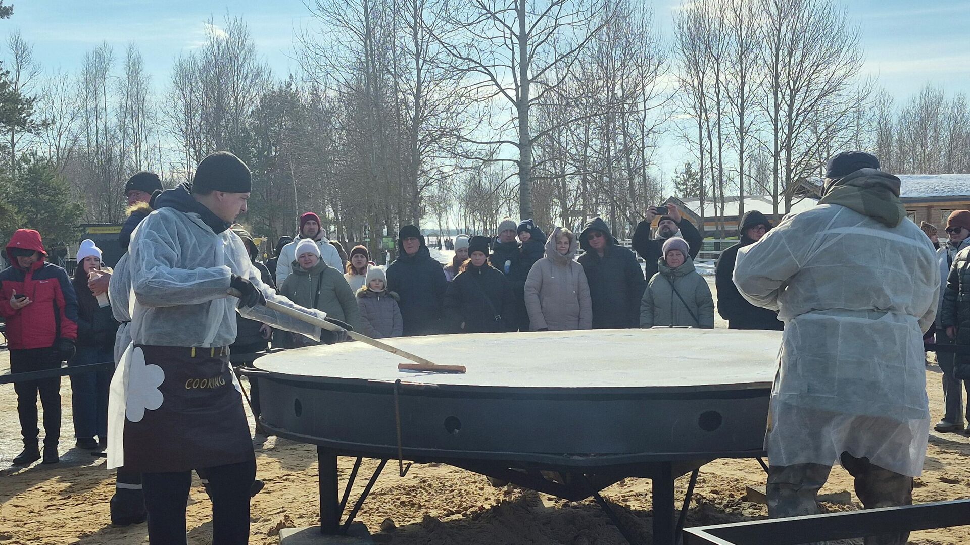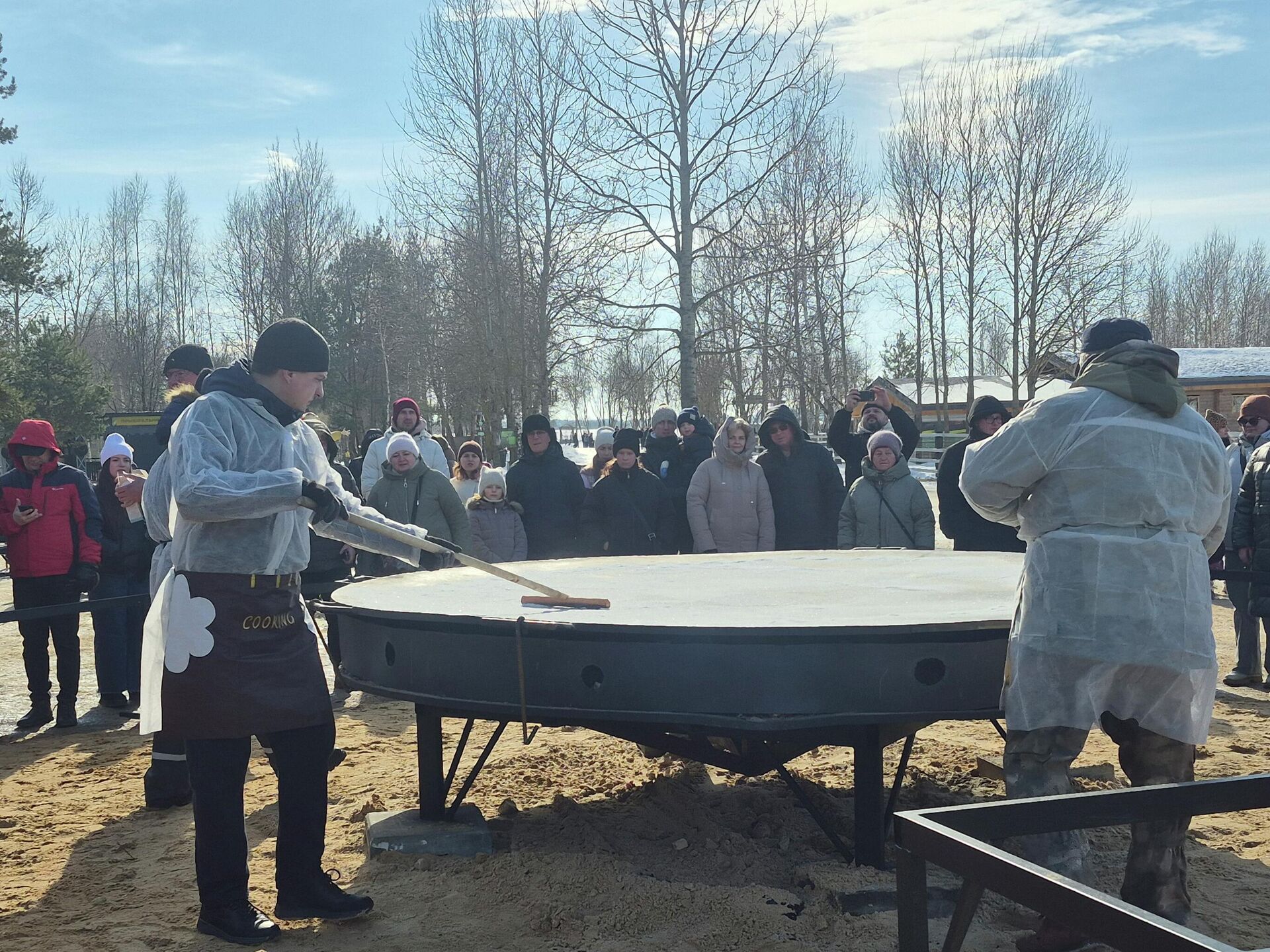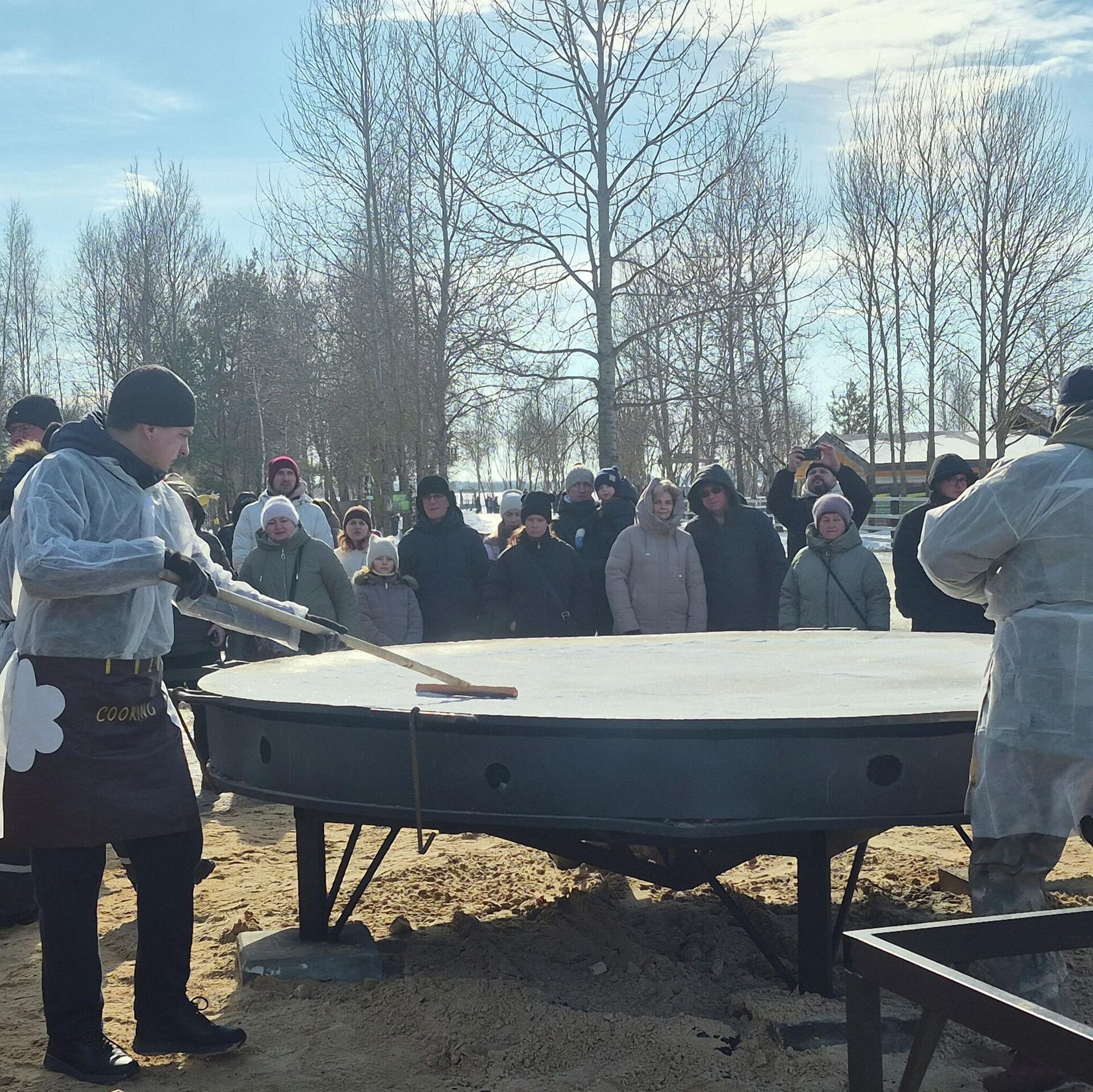 Площадку для приготовления гигантского блина обустроили на территории городского парка животных. 21.02.2026, Sputnik Беларусь