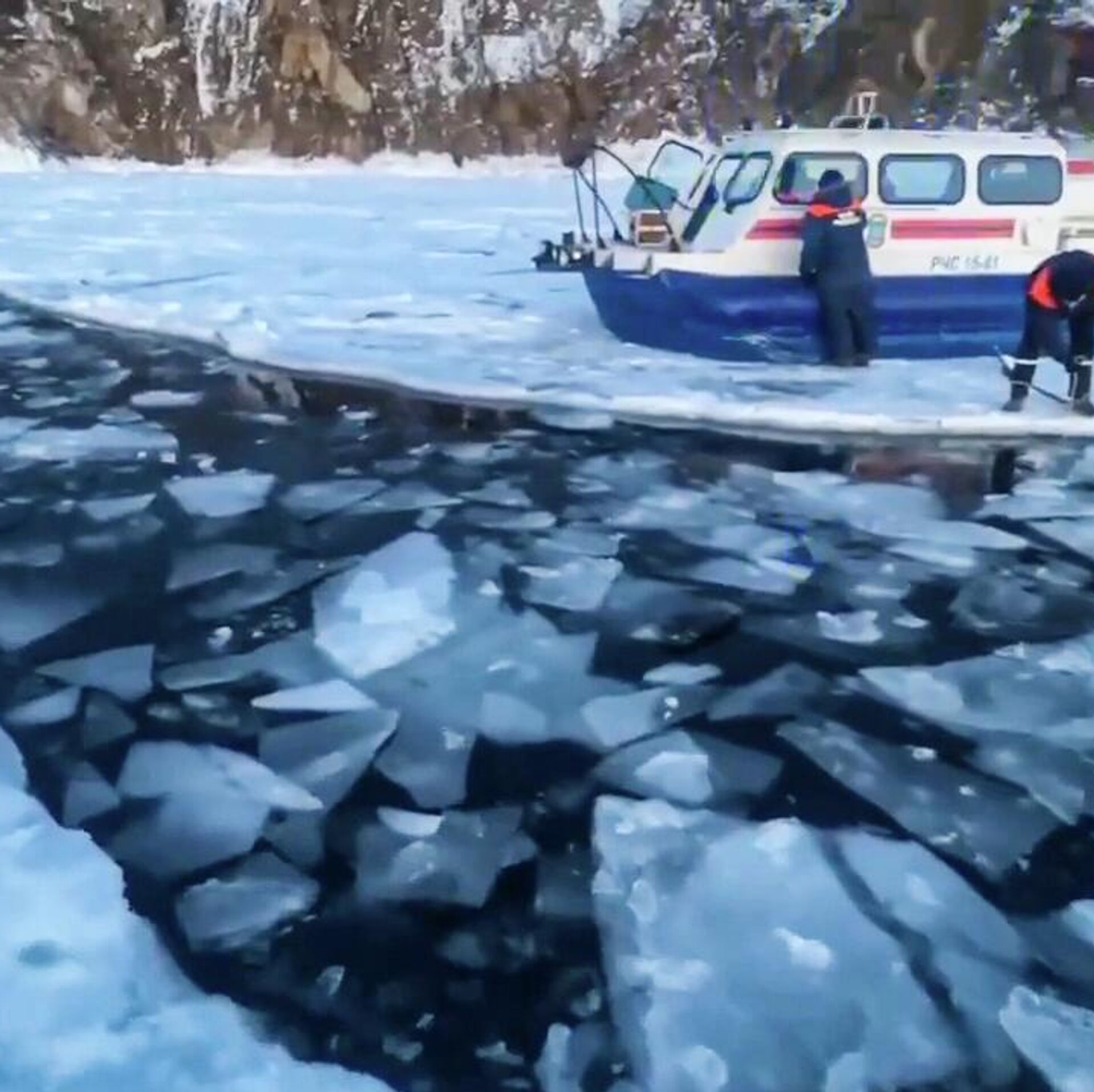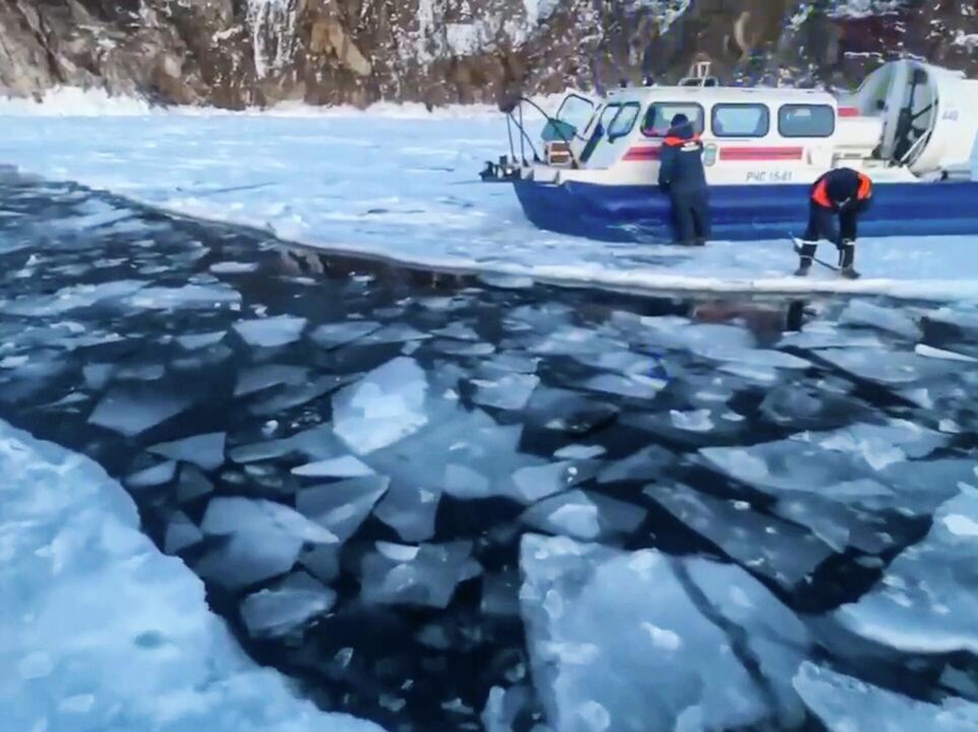 Спасатели извлекают из воды тела погибших на Байкале туристов