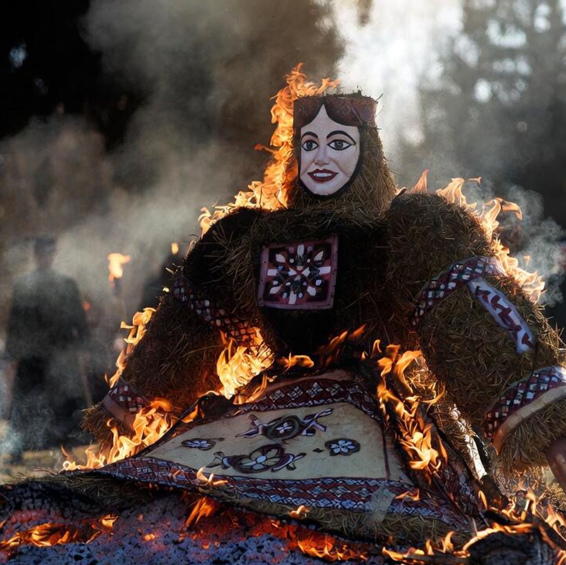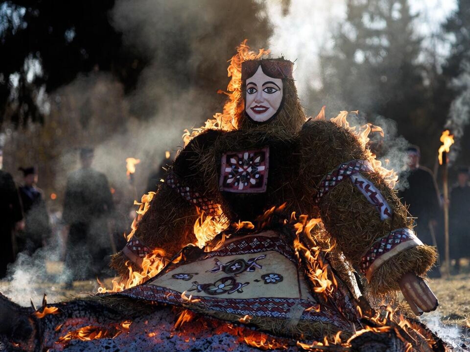 Самой яркой и жаркой стала вечерняя часть программы. На площадке в парке Жилибера весь день было установлено трехметровое чучело Масленицы. Но сжигать его начали только с наступлением темноты. К этому времени в парке собрались сотни семей с детьми. Сначала для гостей праздника устроили огненное шоу.
