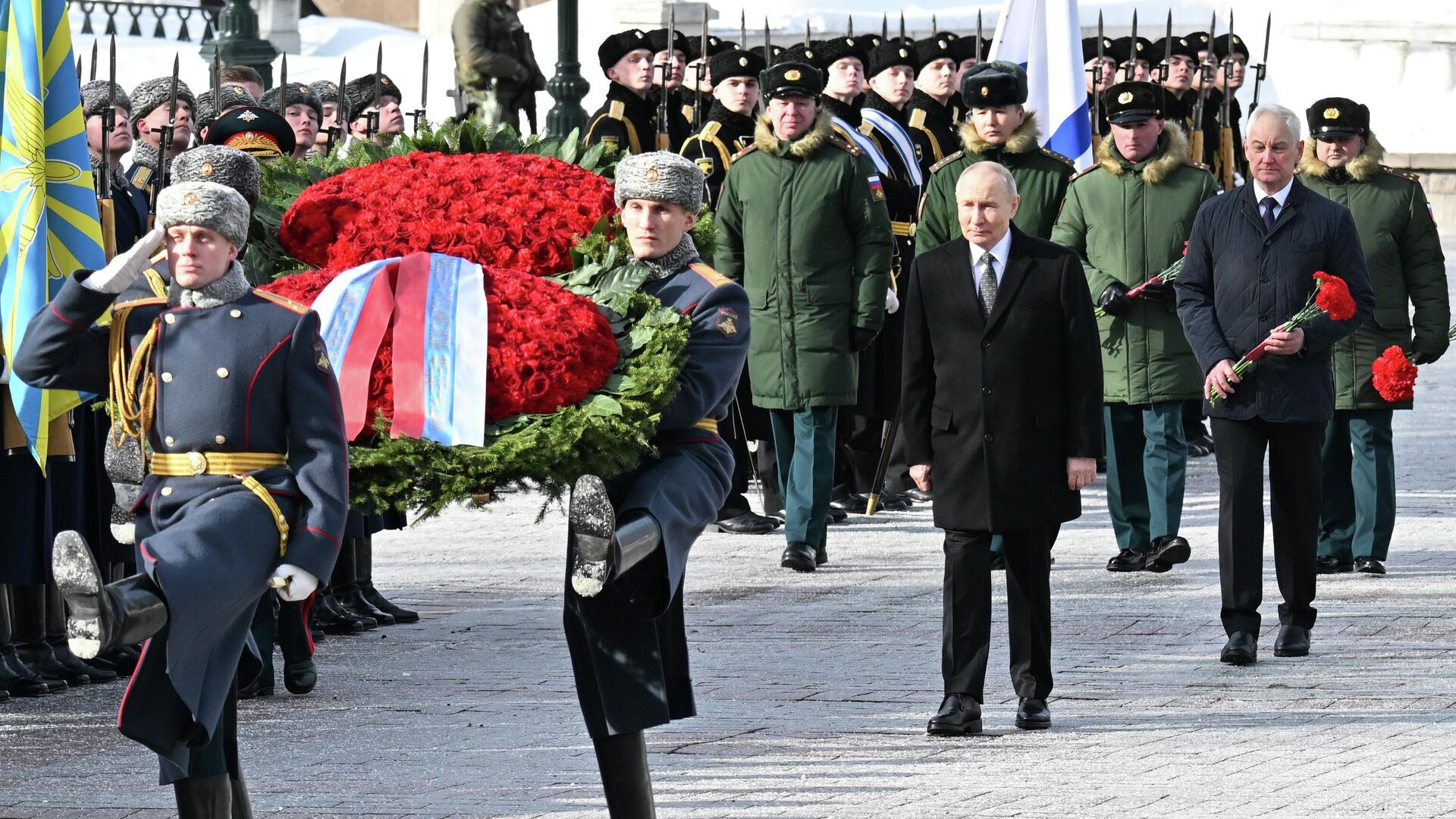 Российский лидер принял участие в возложении венков к Могиле Неизвестного Солдата в Александровском саду у стен Кремля. 23.02.2026, Sputnik Беларусь