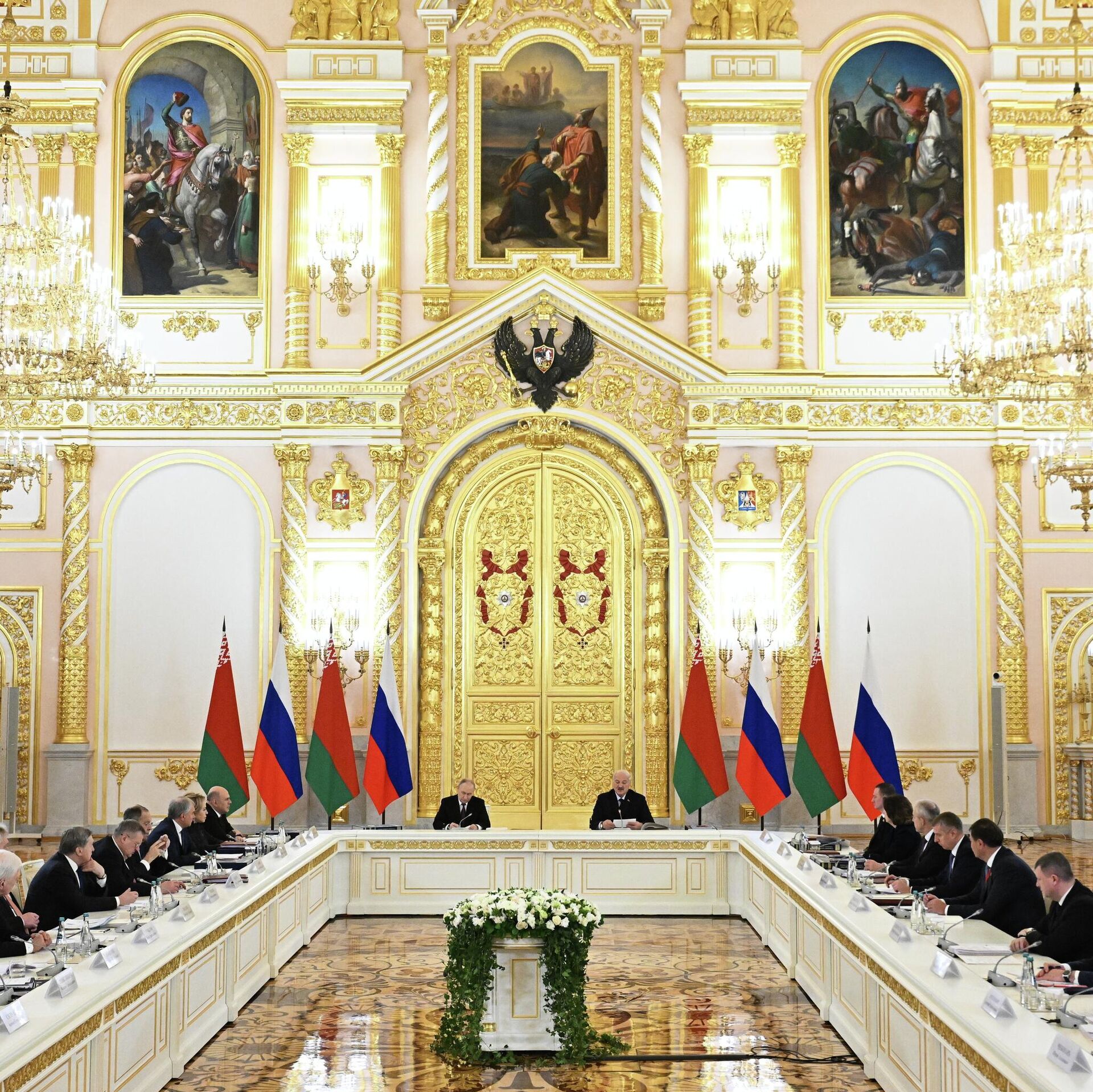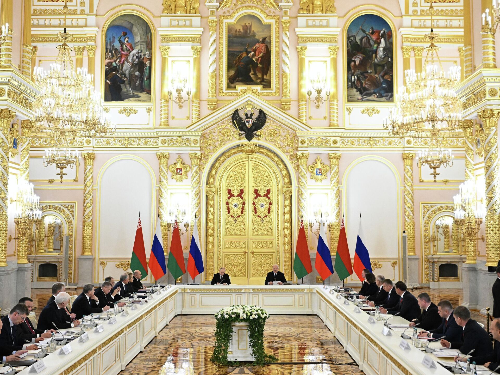 Величественные залы московского Кремля, эмоции и жесты лидеров двух стран и другие подробности состоявшегося в Москве заседания Высшего Госсовета Союзного государства смотрите в фотогалерее Sputnik.