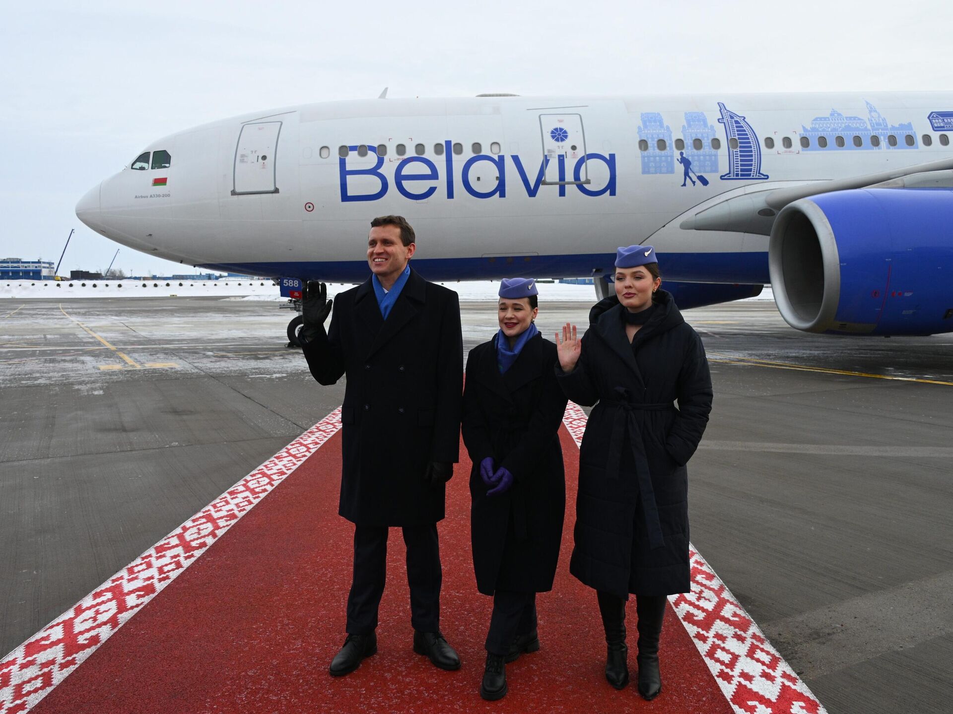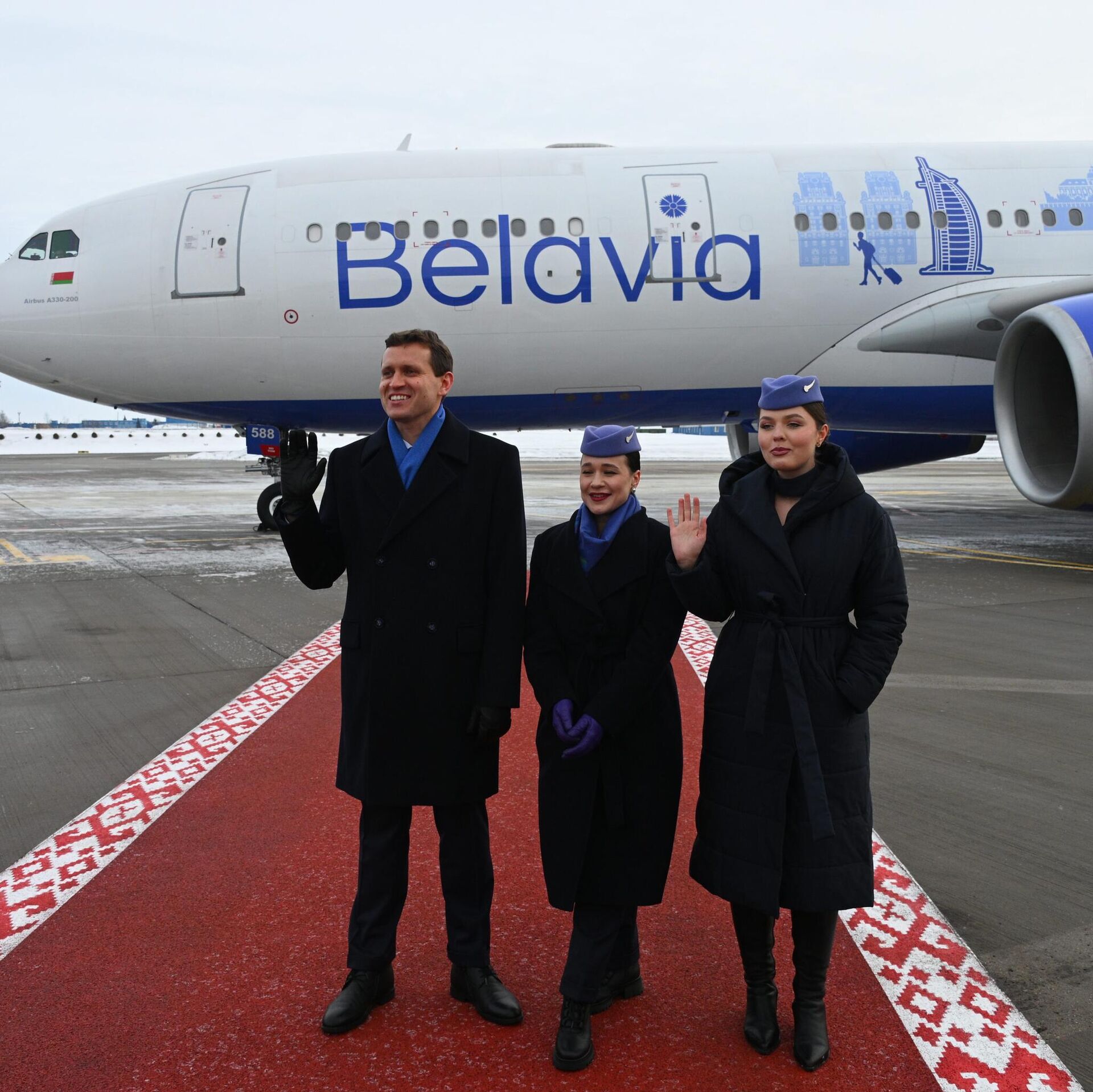 Торжественная презентация прошла в Национальном аэропорту Минск, передает корреспондент Sputnik. Стильная ливрея с узнаваемыми достопримечательностями разных стран мира украсила один из трех дальнемагистральных бортов, которые пополнили воздушный флот "Белавиа" в 2025 году.