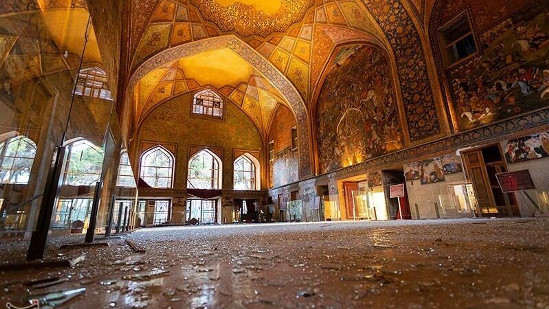 Поврежденный дворец Чехель-сотун в городе Исфахан после авиаударов США и Израиля.