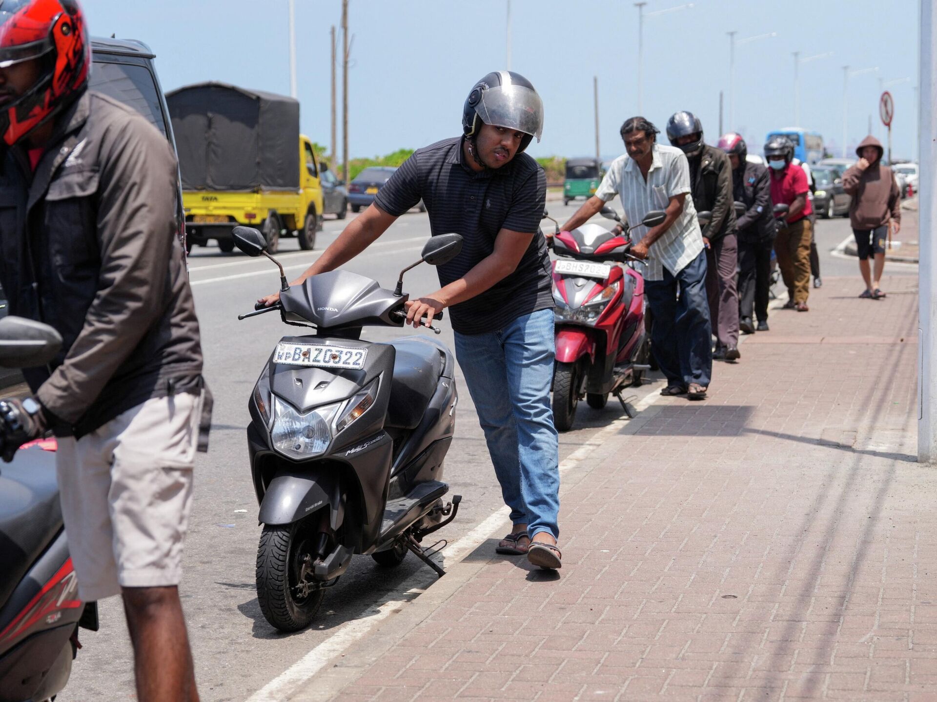 Турист рассказал о длинных очередях на автозаправках и о том, многие АЗС не работают, поэтому жители Шри-Ланки вынуждены искать бензин по всему острову.