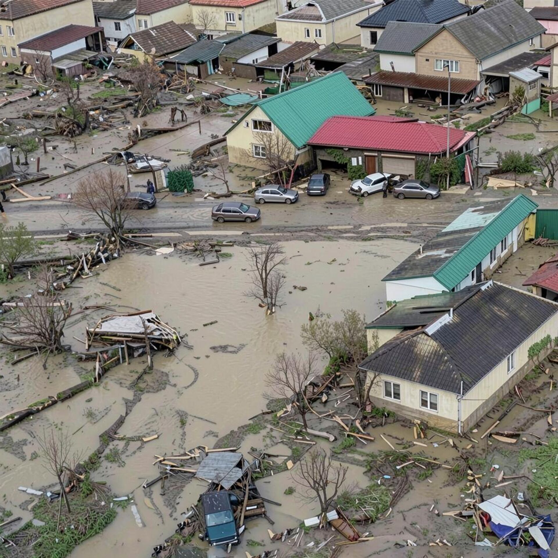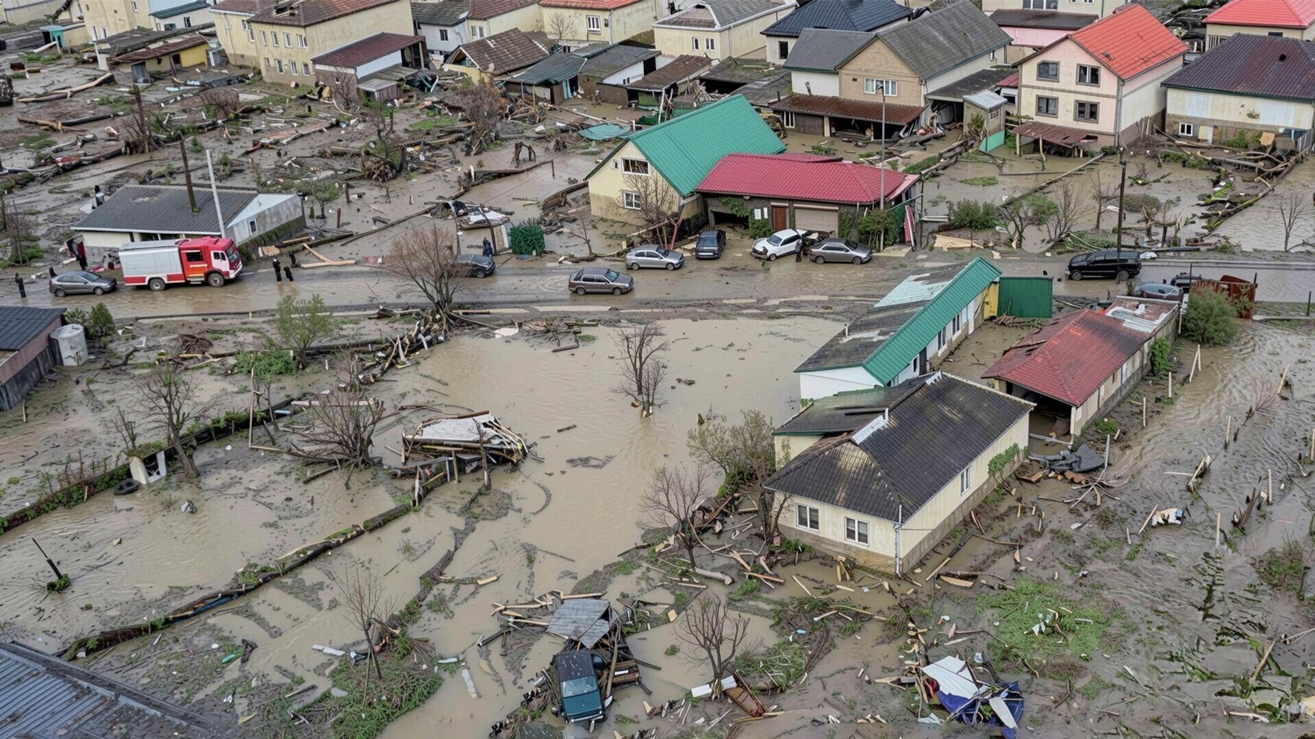 В Дагестане ликвидируют последствия наводнения – видео с вертолета МЧС