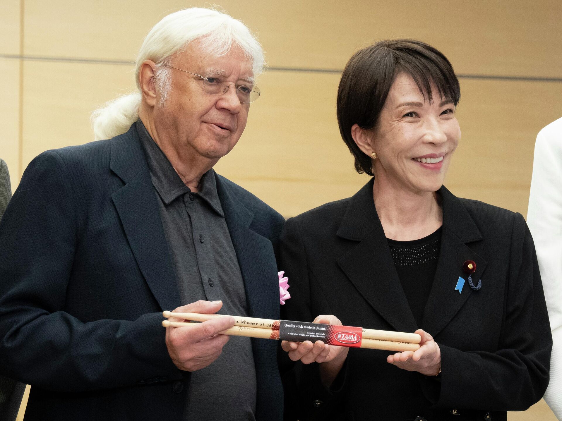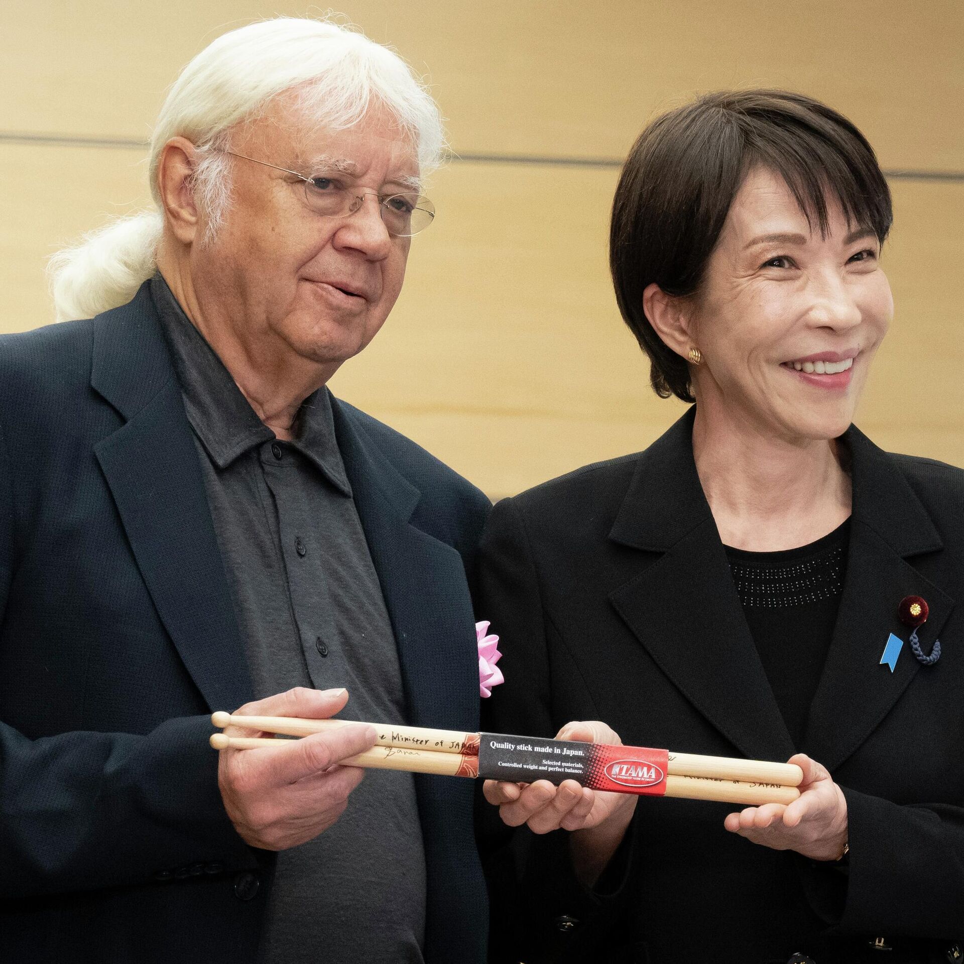 МИНСК, 10 апр – Sputnik. Премьер-министр Японии Санаэ Такаити подарила музыкантам британской рок-группы Deep Purple барабанные палочки со своим автографом, передает агентство Киодо.