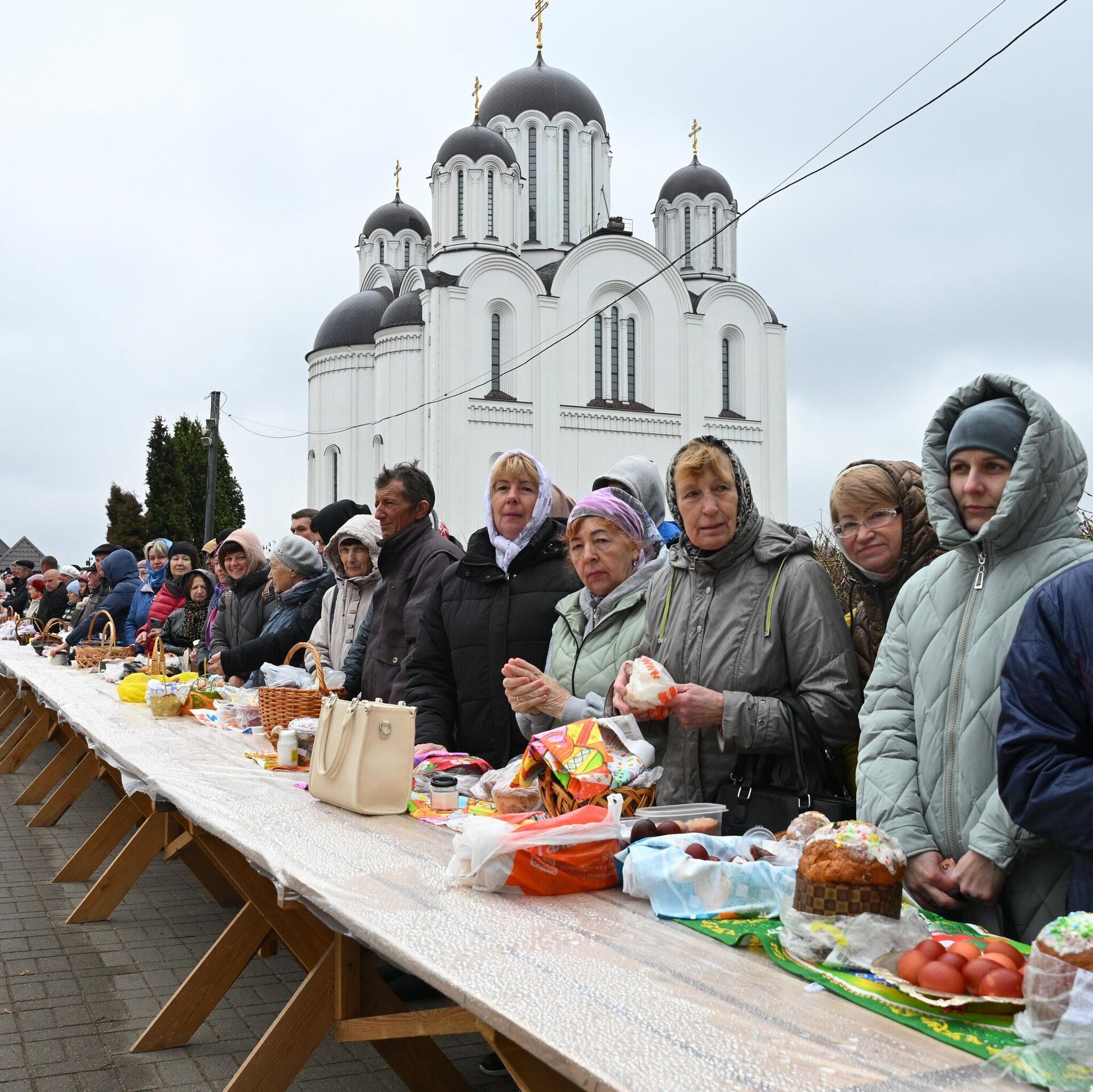Корреспондент Sputnik накануне Пасхи побывал у храма-памятника Всех Святых в белорусской столице, где минчане освящали пасхальные угощения. 11.04.2026, Sputnik Беларусь