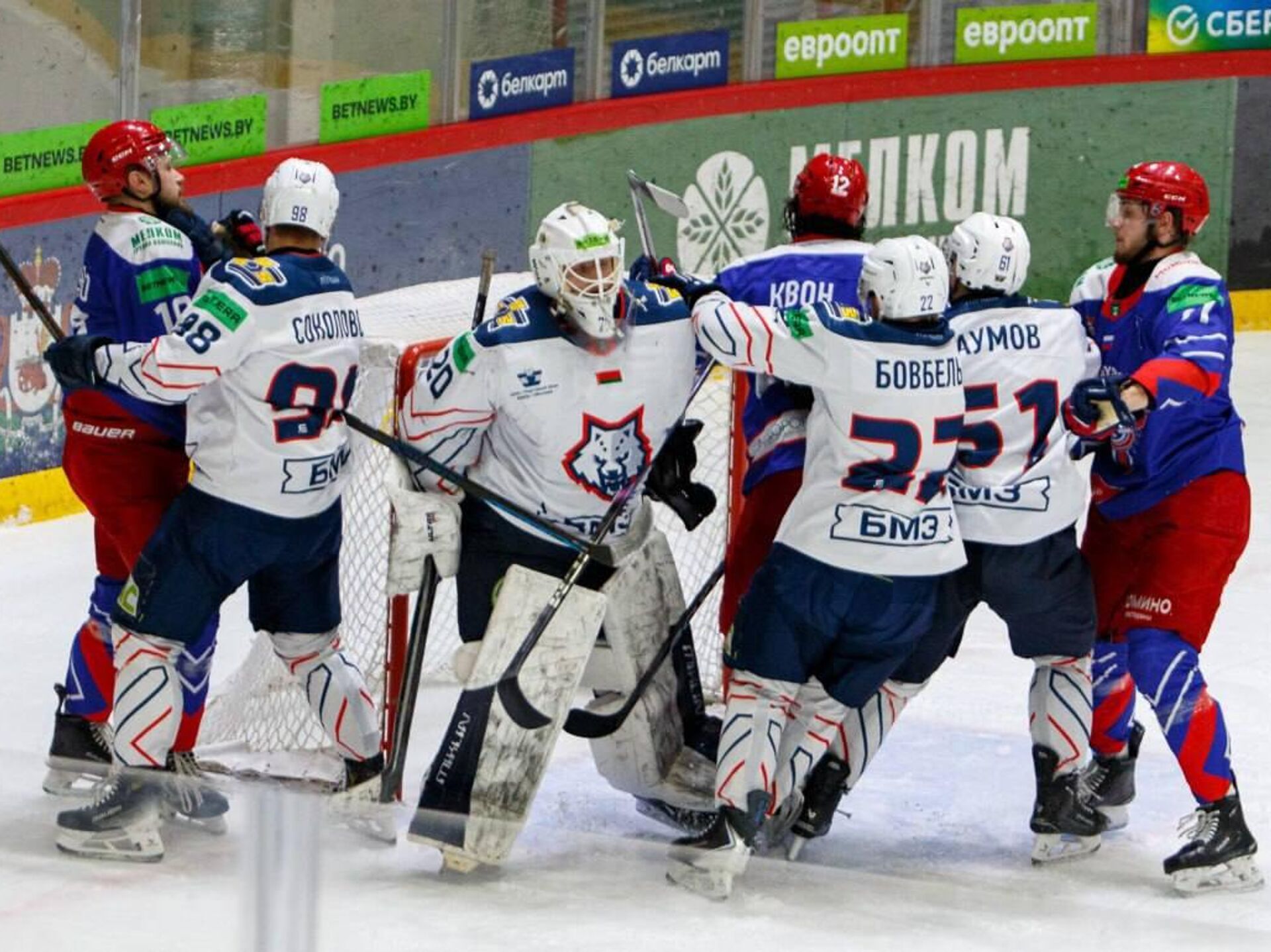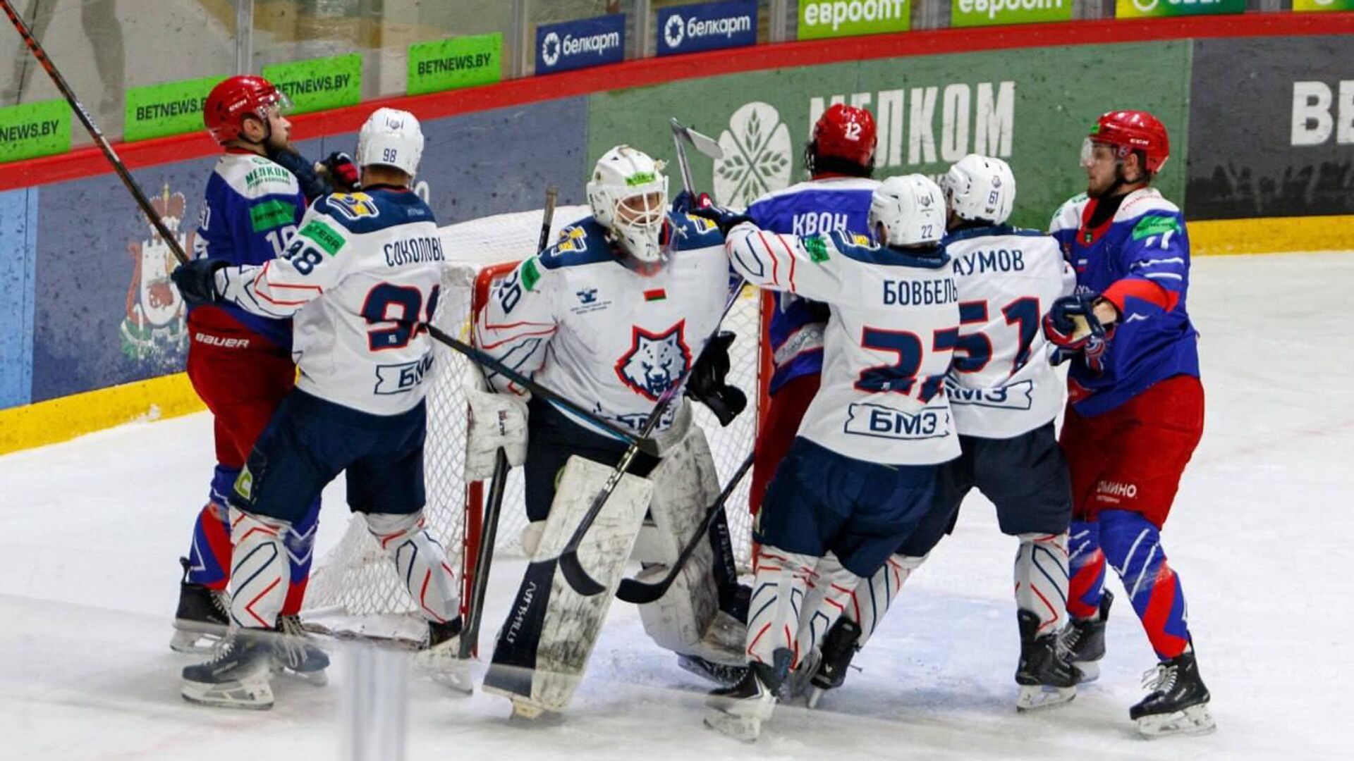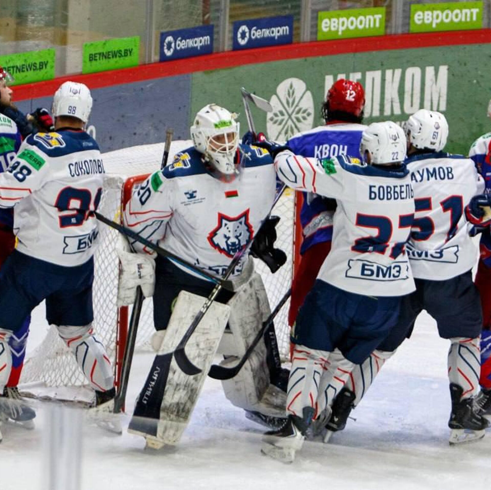 Первый матч серии до четырех побед прошел на домашнем льду "Славутича" в Смоленске. После двух периодов "шахтеры" имели минимальное преимущество 0:1, но в третьем периоде игроки российской команды не только отыгрались, но и вырвали победу со счетом 3:1.