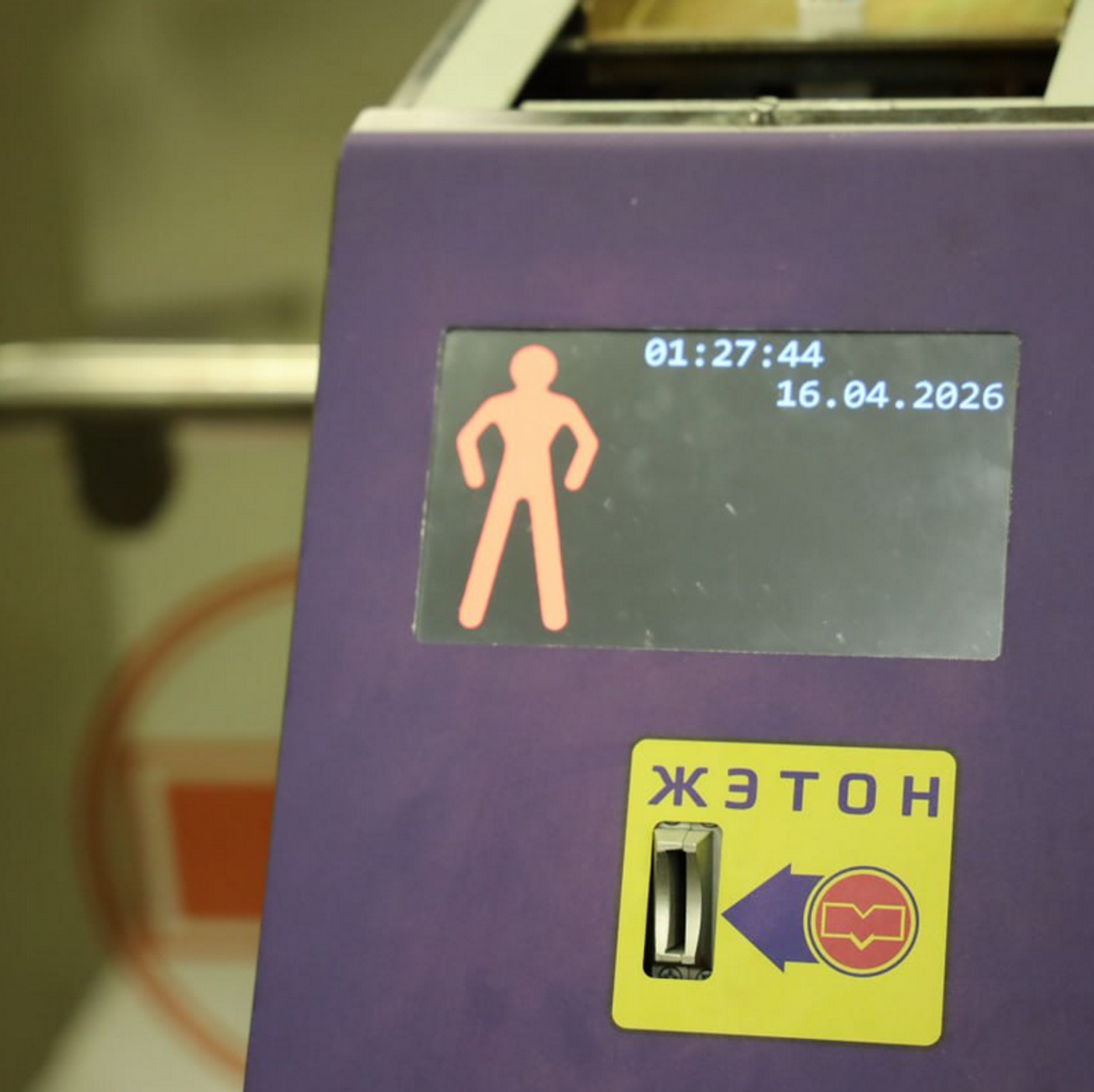 Турникет находится в вестибюле со стороны Площади Независимости слева от кабины контролера. Какое-то время он будет работать в тестовом режиме.