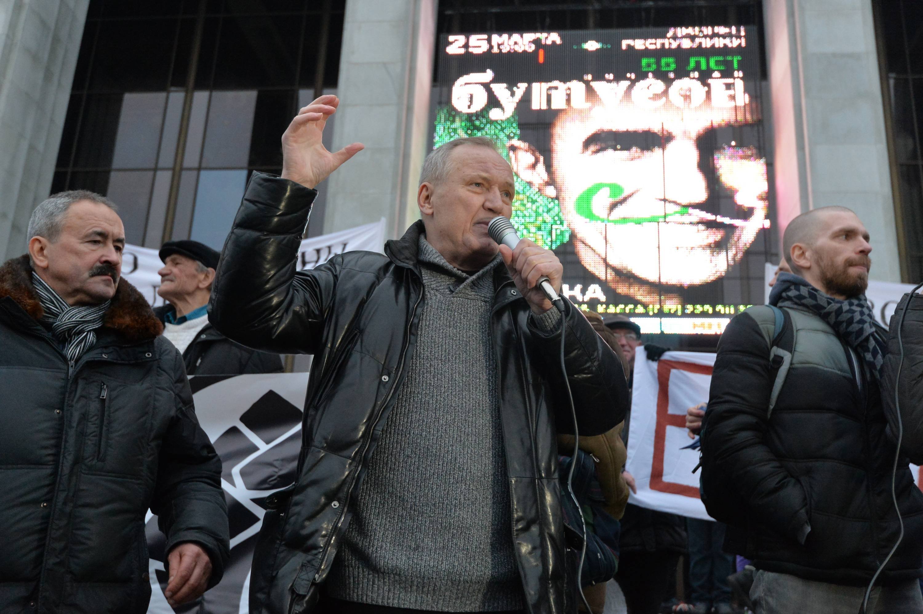 Уже спустя 20 минут на Октябрьской собрались около тысячи человек. Пришедшие принесли бело-красно-белые флаги. Перед ними выступают лидеры оппозиции – Николай Статкевич, Павел Северинец и Владимир Некляев.